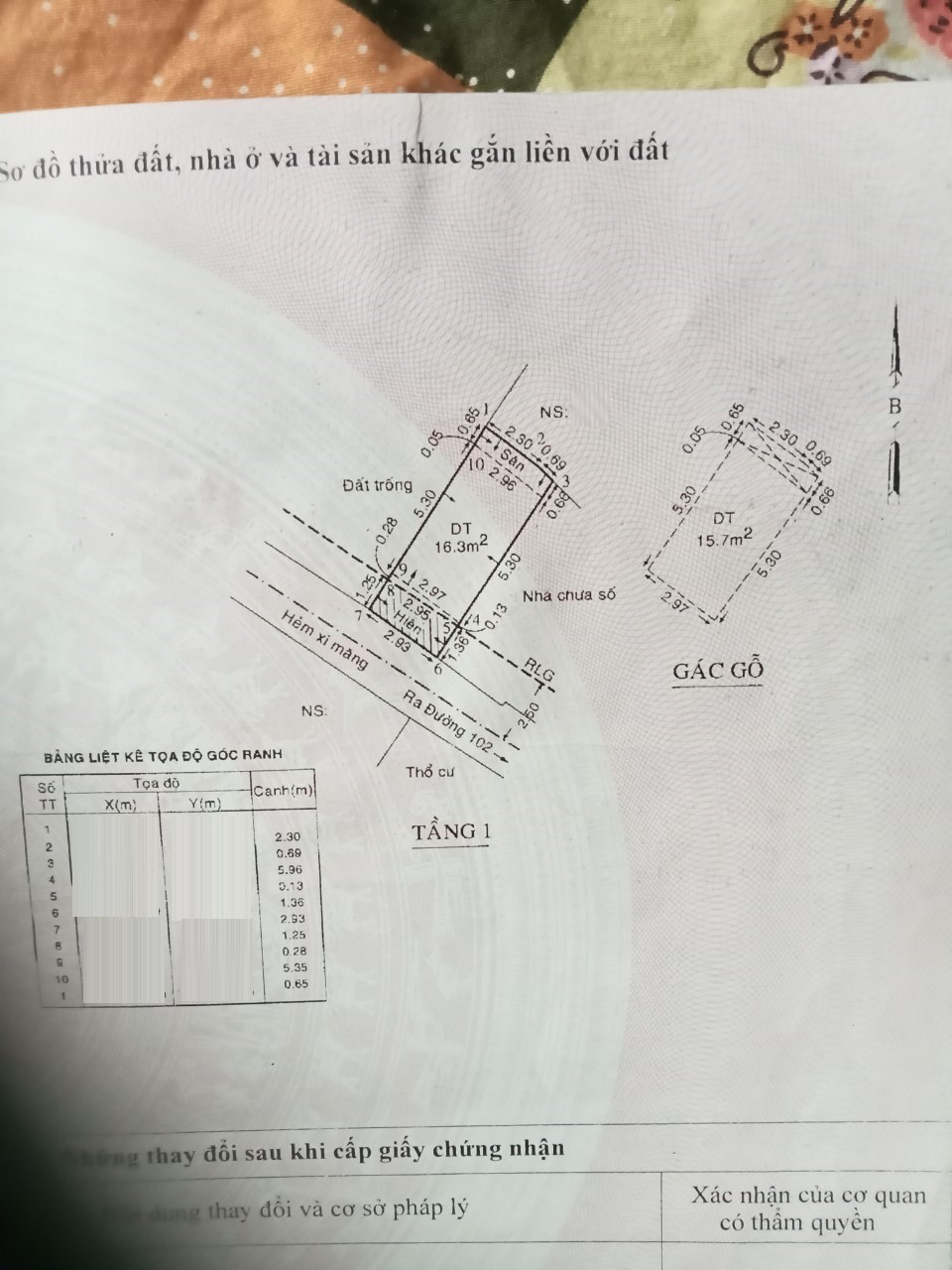*Diện Tích đất công nhận: 18.4 m2 ngang 2.95 m x dài 6.23m