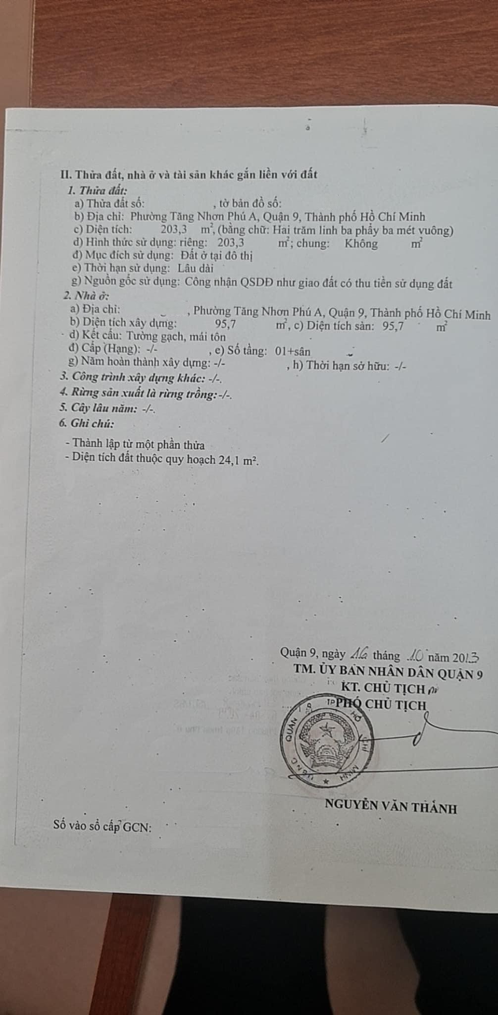 Địa chỉ tài sản: Đường 106, Phường Tăng Nhơn Phú A, Phường Tăng Nhơn Phú A, Quận 9, Hồ Chí Minh