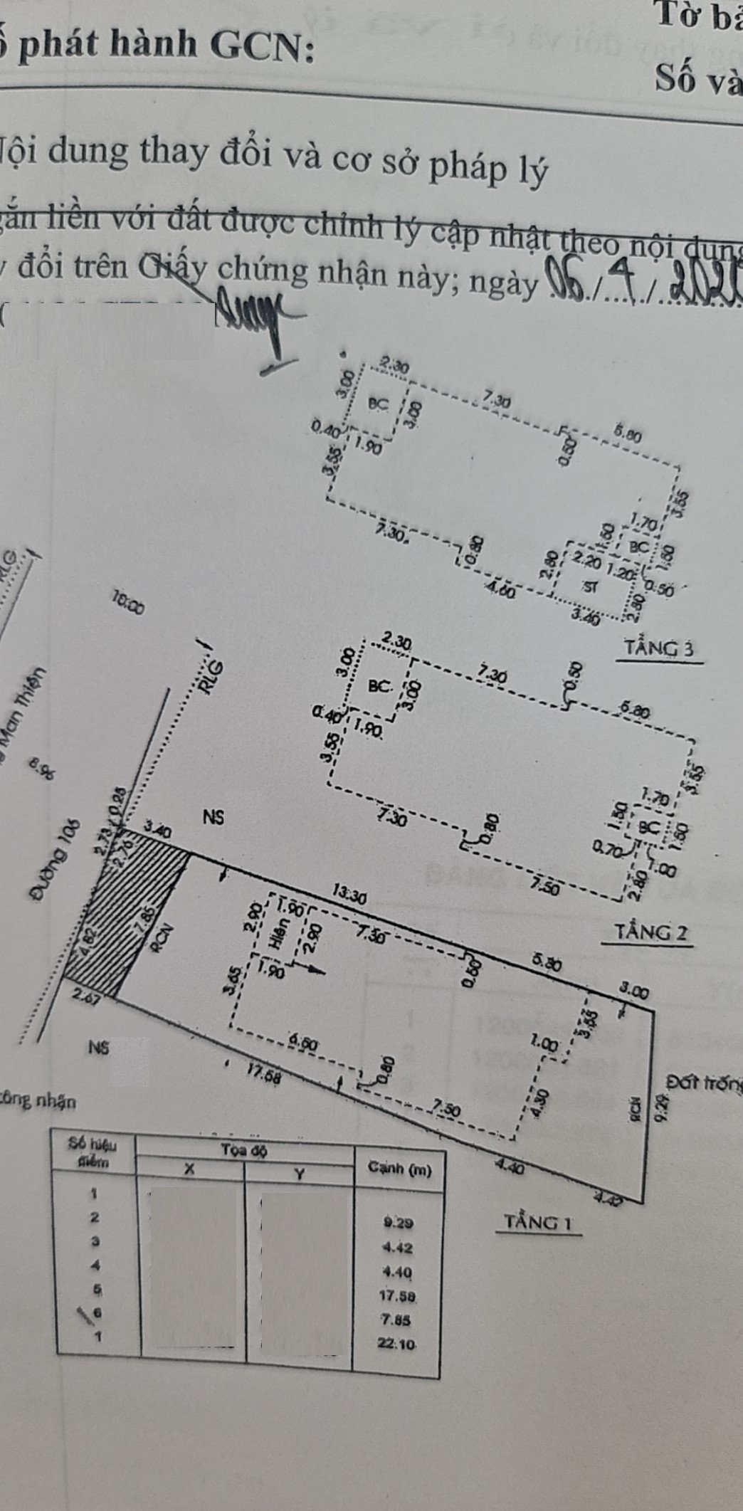 * Diện tích đất ODT: 203.3m2 ( ngang 7m x dài 22.10m) phần đất chưa được công nhận 21m