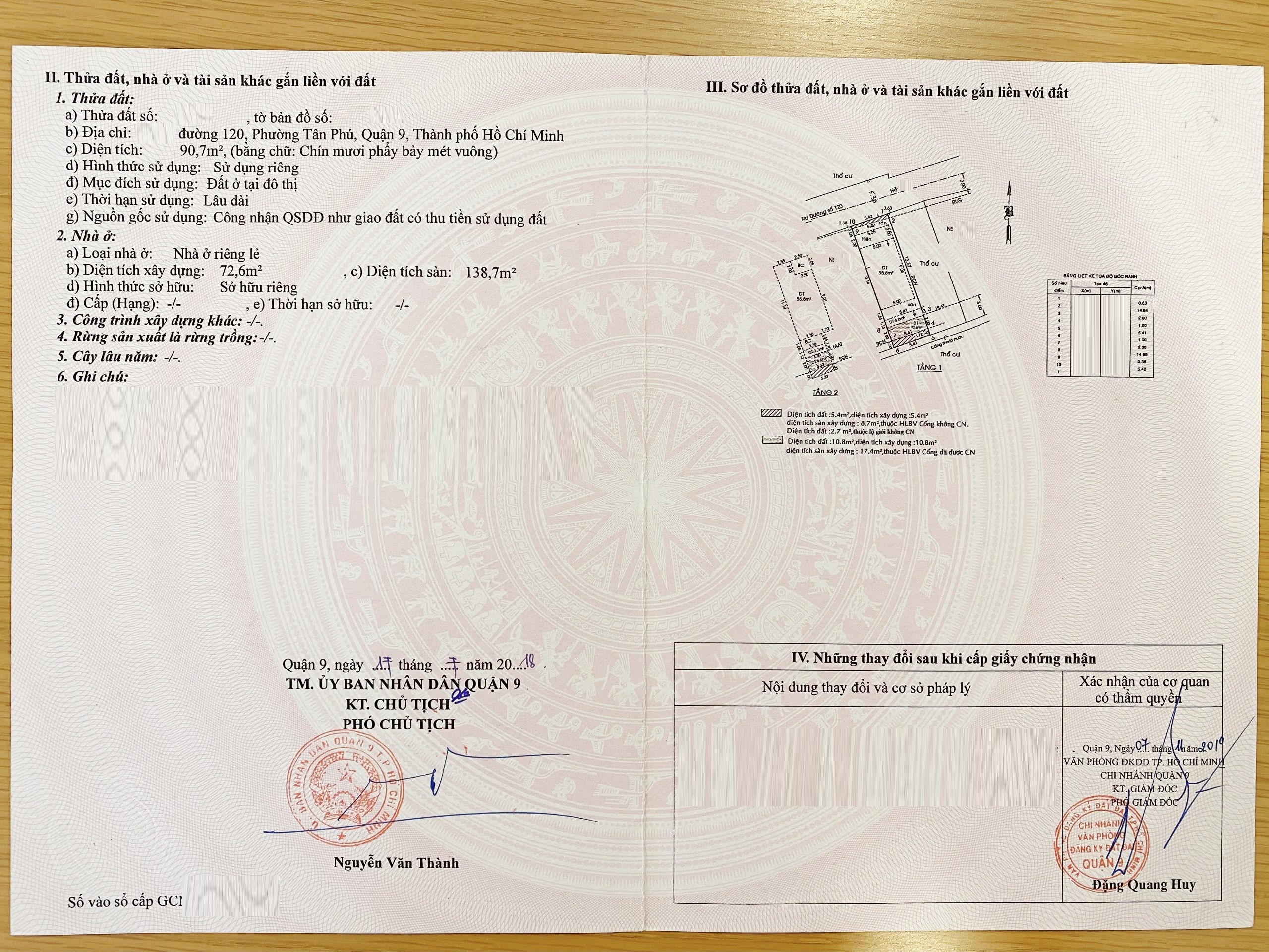 *Diện Tích đất công nhận: 90.7 m2 ngang 5.4 m x dài 16.7 m