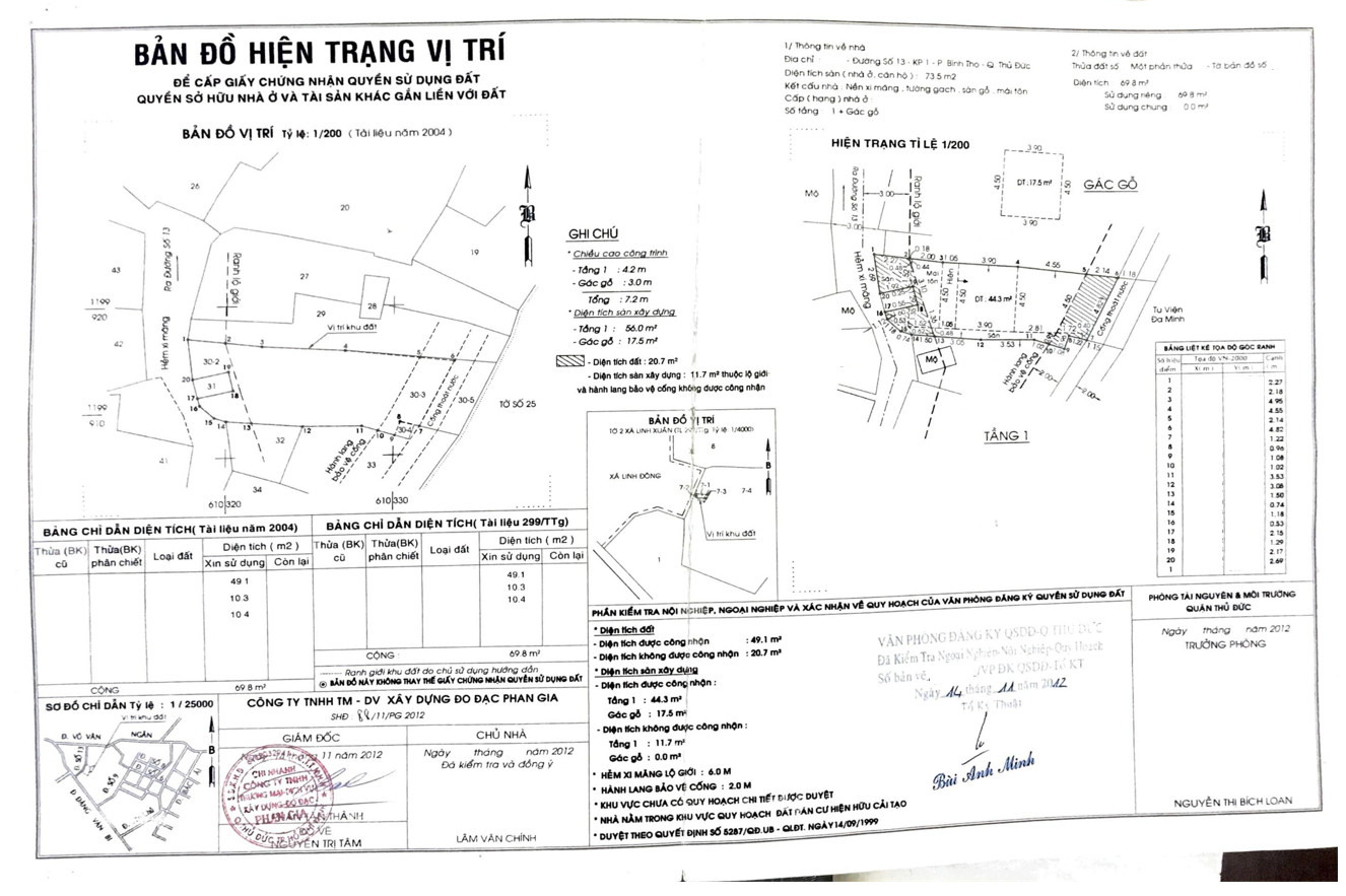 *Diện Tích đất công nhận: 69.8 m2 ngang 4.8 m x dài 14.5 m
