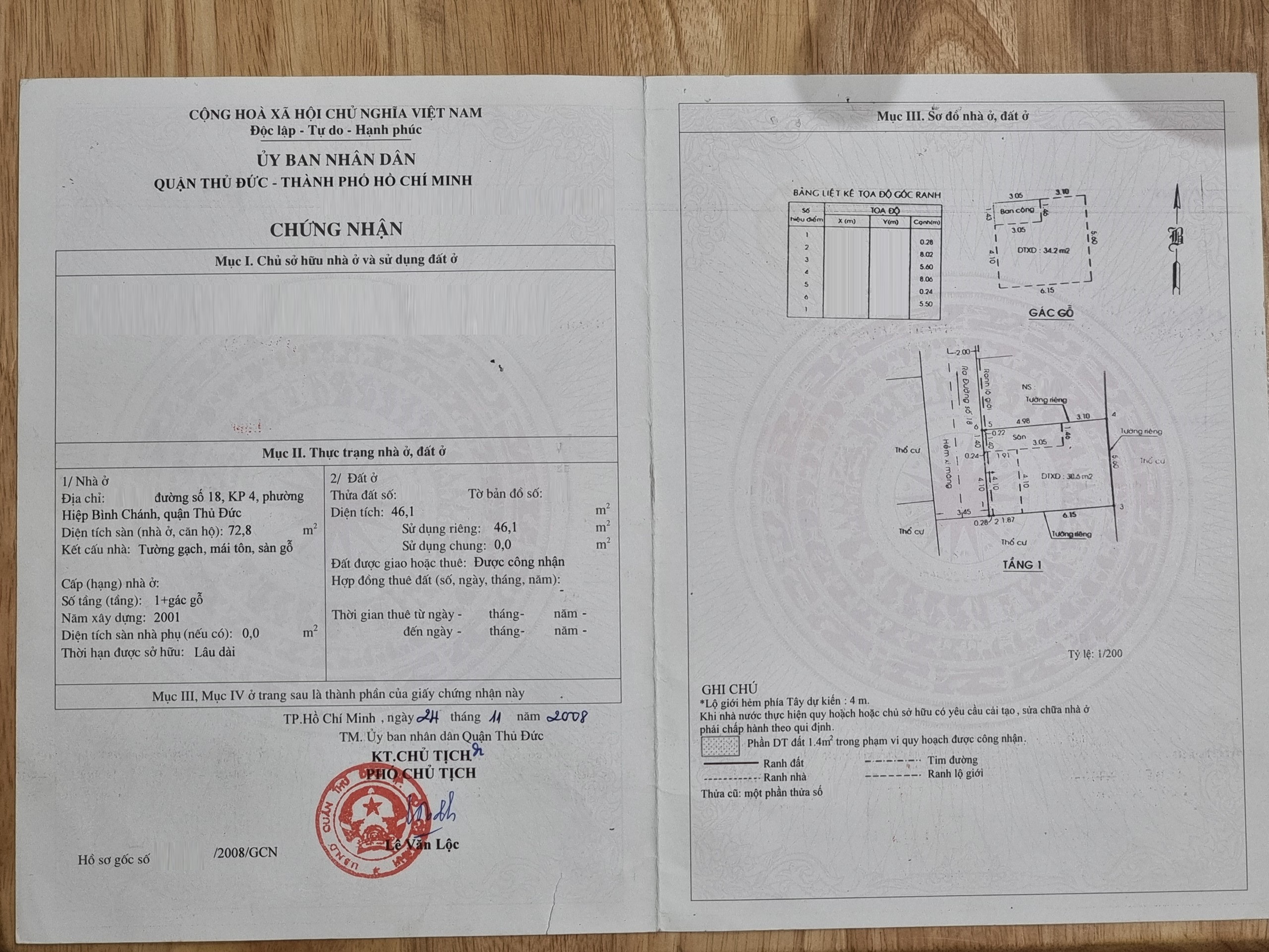 *Diện Tích đất công nhận: 46.1 m2 ngang 5.5 m x dài 8.38 m