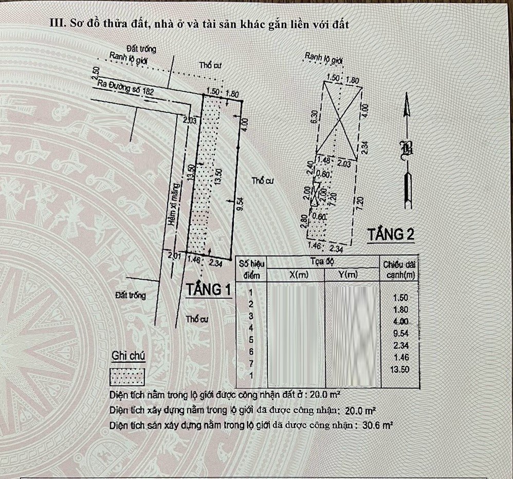 *Diện tích đất công nhận: 47.6m2. Ngang 3.3m x Dài 13.54m