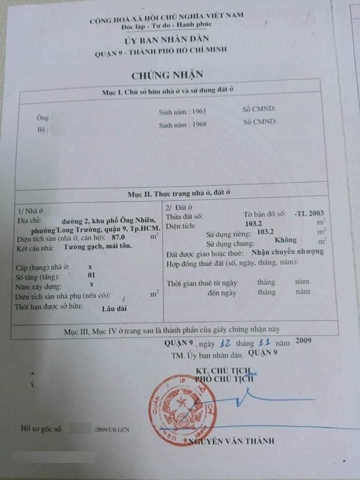 Địa chỉ tài sản: đường 2, Phường Long Trường,, Phường Long Trường, Quận 9, Hồ Chí Minh