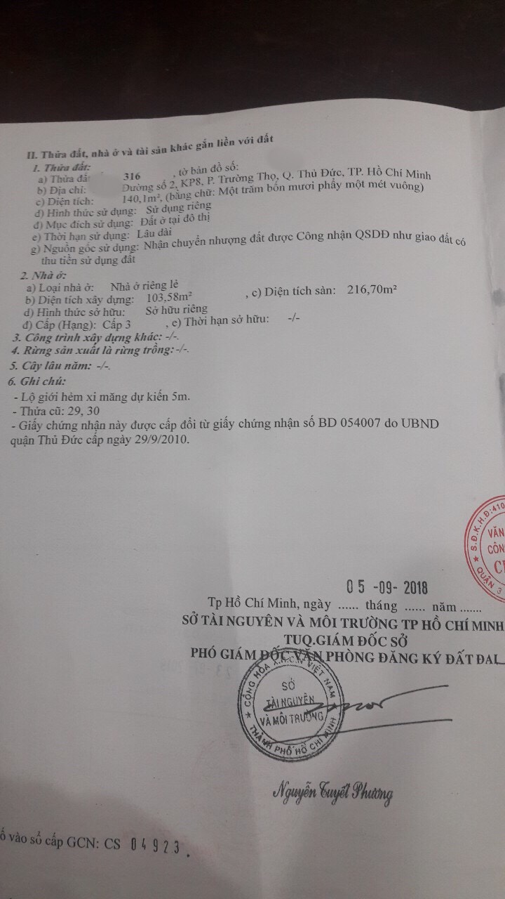 <1007TT>: Bán nhà đường 2. Trường thọ, Thủ Đức