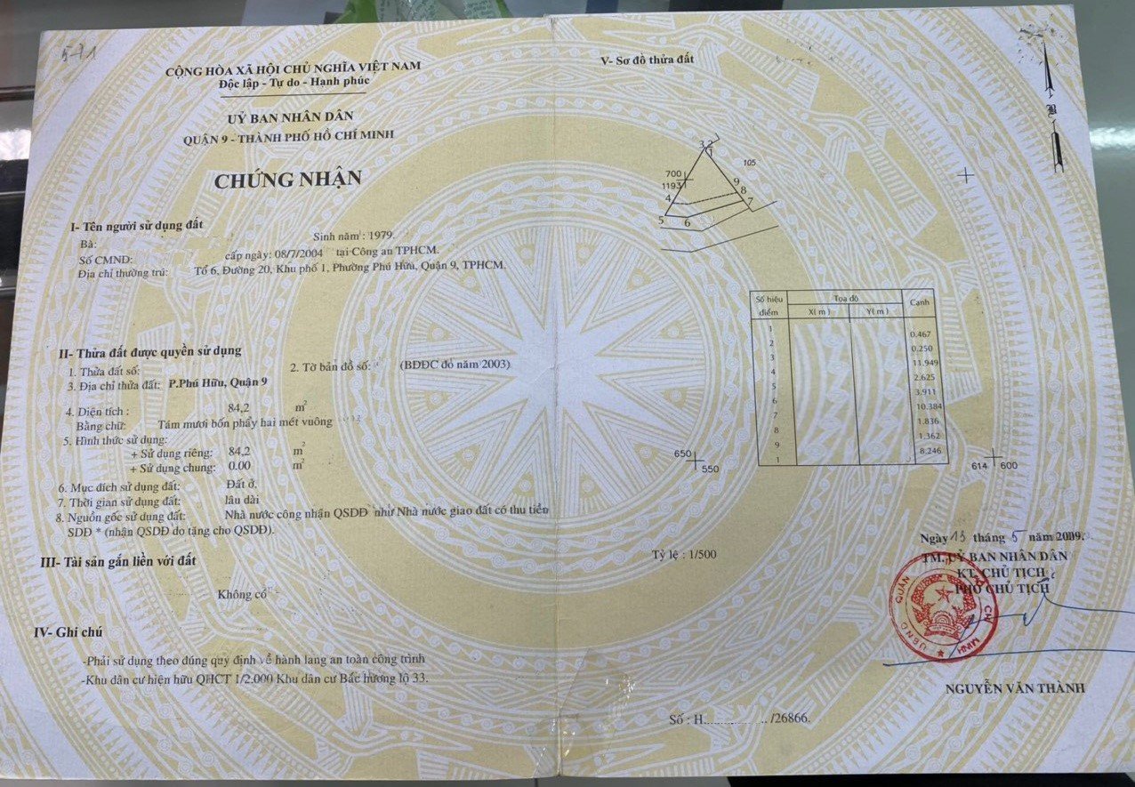 Địa chỉ tài sản: đường 20, Phường Phú Hữu, Phường Phú Hữu, Quận 9, Hồ Chí Minh