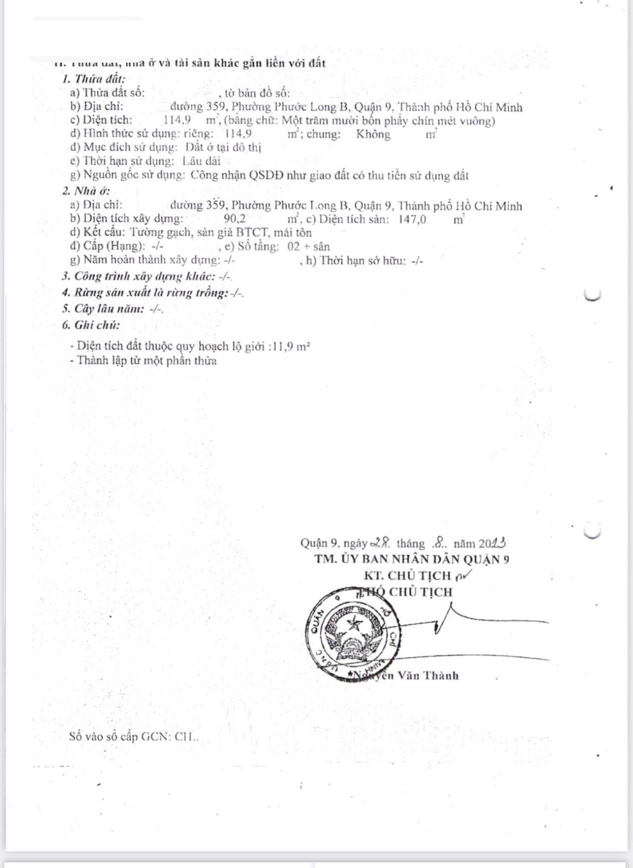 Địa chỉ tài sản: đường 359, phường Phước Long B, TP Thủ Đức, Phường Phước Long B, Quận 9, Hồ Chí Minh