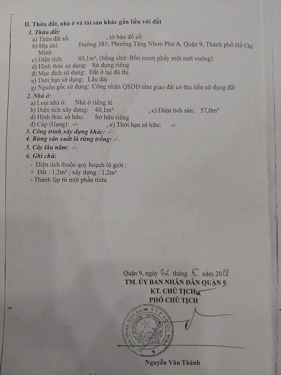 Địa chỉ tài sản: đường 385, phường Tăng Nhơn Phú A, Phường Tăng Nhơn Phú A, Quận 9, Hồ Chí Minh