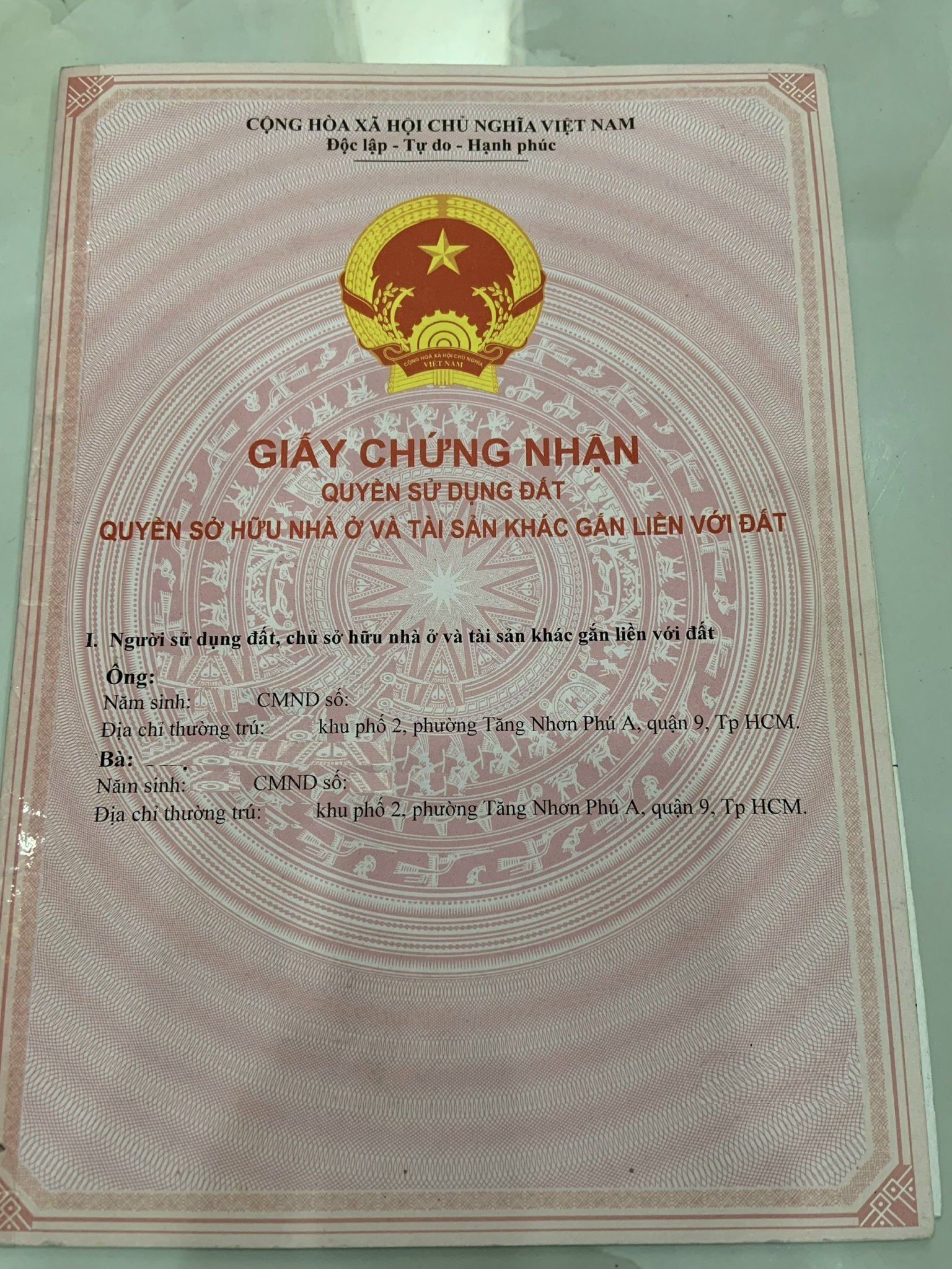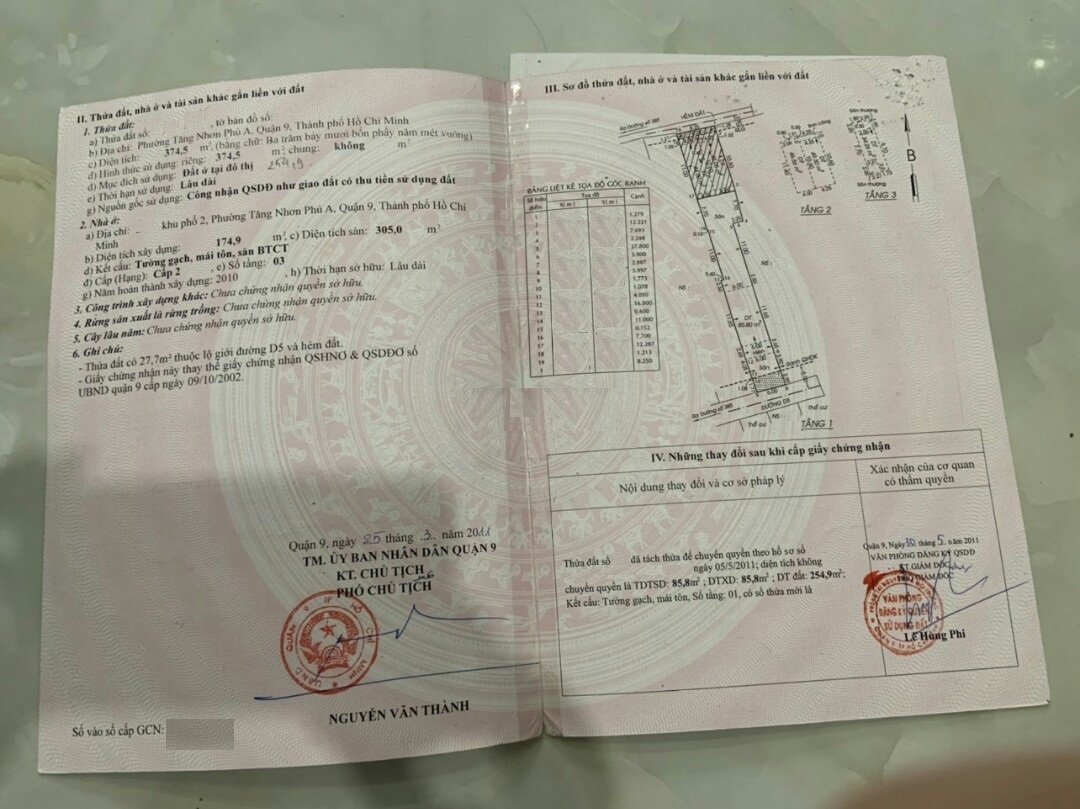 <81TNPA>: Bán nhà, Đường 385, Phường Tăng Nhơn Phú A, Quận 9. Hẻm xe hơi 5m. Nhà 1 trệt 3 lầu, sân thượng trước sau, giếng trời, sân để được 2 ôtô, sân sau có nhà gỗ lợp ngói, cột gỗ Căm xe rừng Tánh Linh. Gồm có 5 PN, 6 WC, 1 phòng sinh hoạt chung ,1 bếp, 1 PK, 1 Phòng thờ, sân phơi tầng thượng có.mái che. Nhà đúc kiên cố để ở, cổng, 2 lớp cửa cuốn Đức, toàn bộ cửa gỗ đều bằng Gõ đỏ thợ mộc từ Quảng Nam vào làm hoàn toàn bằng thủ công.