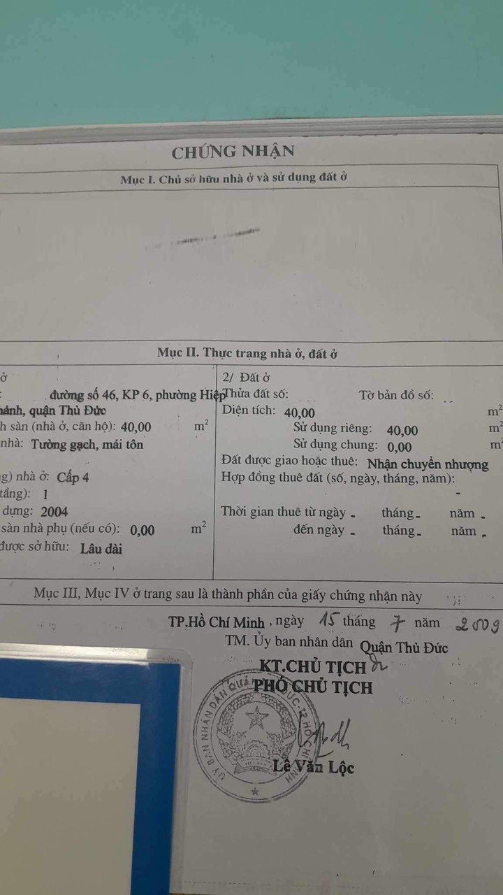 *Diện tích đất công nhận: 40m2. Ngang 4m x Dài 10m.
