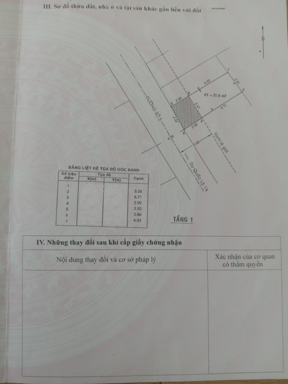 *Diện Tích đất công nhận: 22.6 m2 ngang 3.5 m x dài 6.5 m