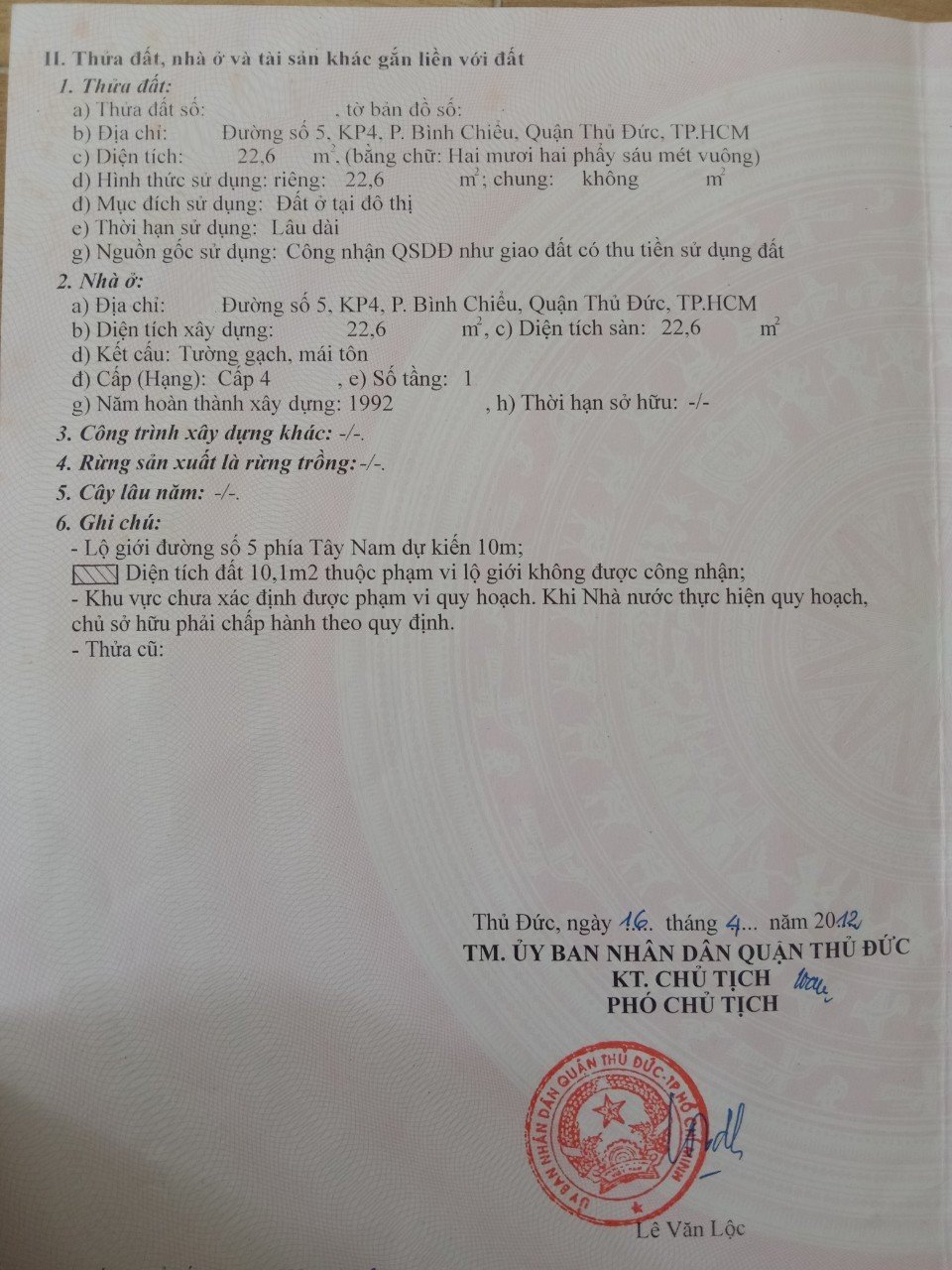 Địa chỉ tài sản: đường 5, phường Bình Chiểu, Phường Bình Chiểu, Quận Thủ Đức, Hồ Chí Minh