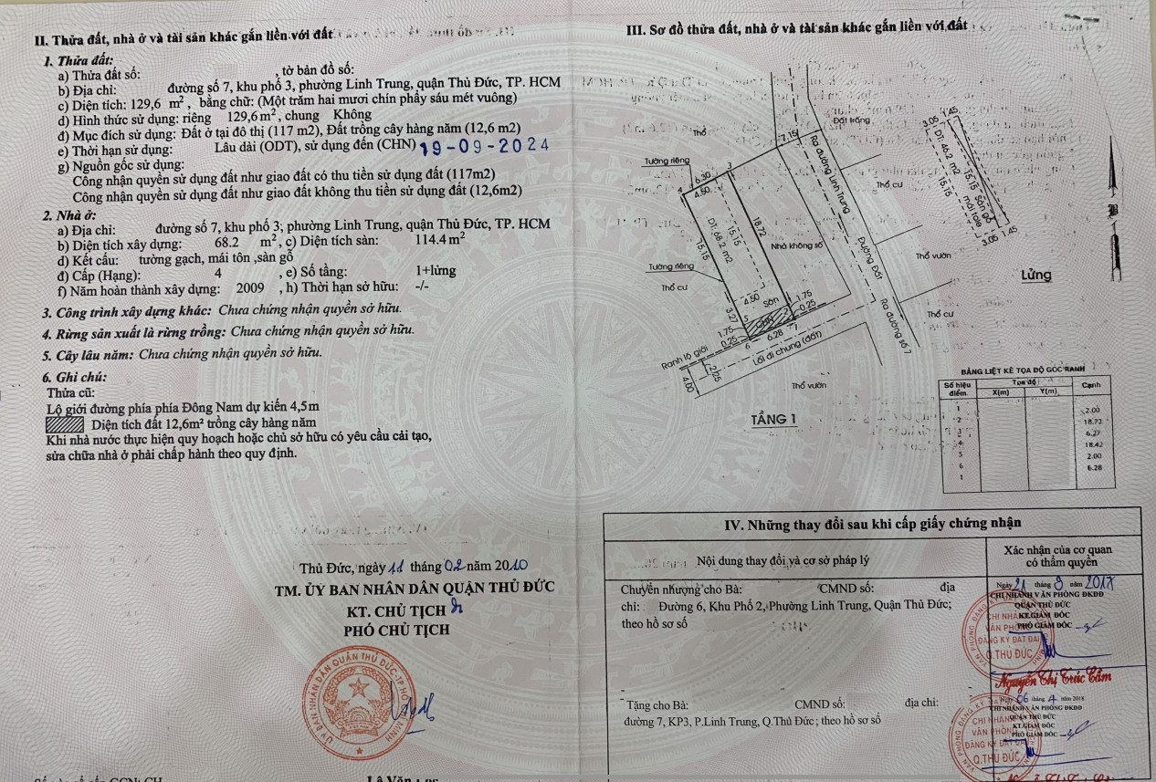 *Diện Tích đất công nhận: 129.6 m2 ngang 6.3 m x dài 20.5 m ODT: 117 m2 : DTC: 12.6 m2