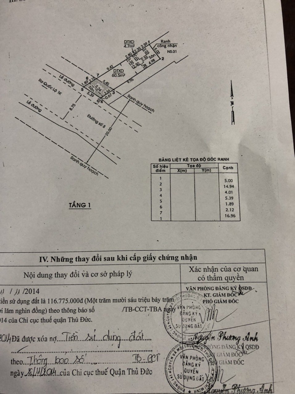 *Diện Tích đất công nhận: 100 m2 ngang 5.3 m x dài 20 m