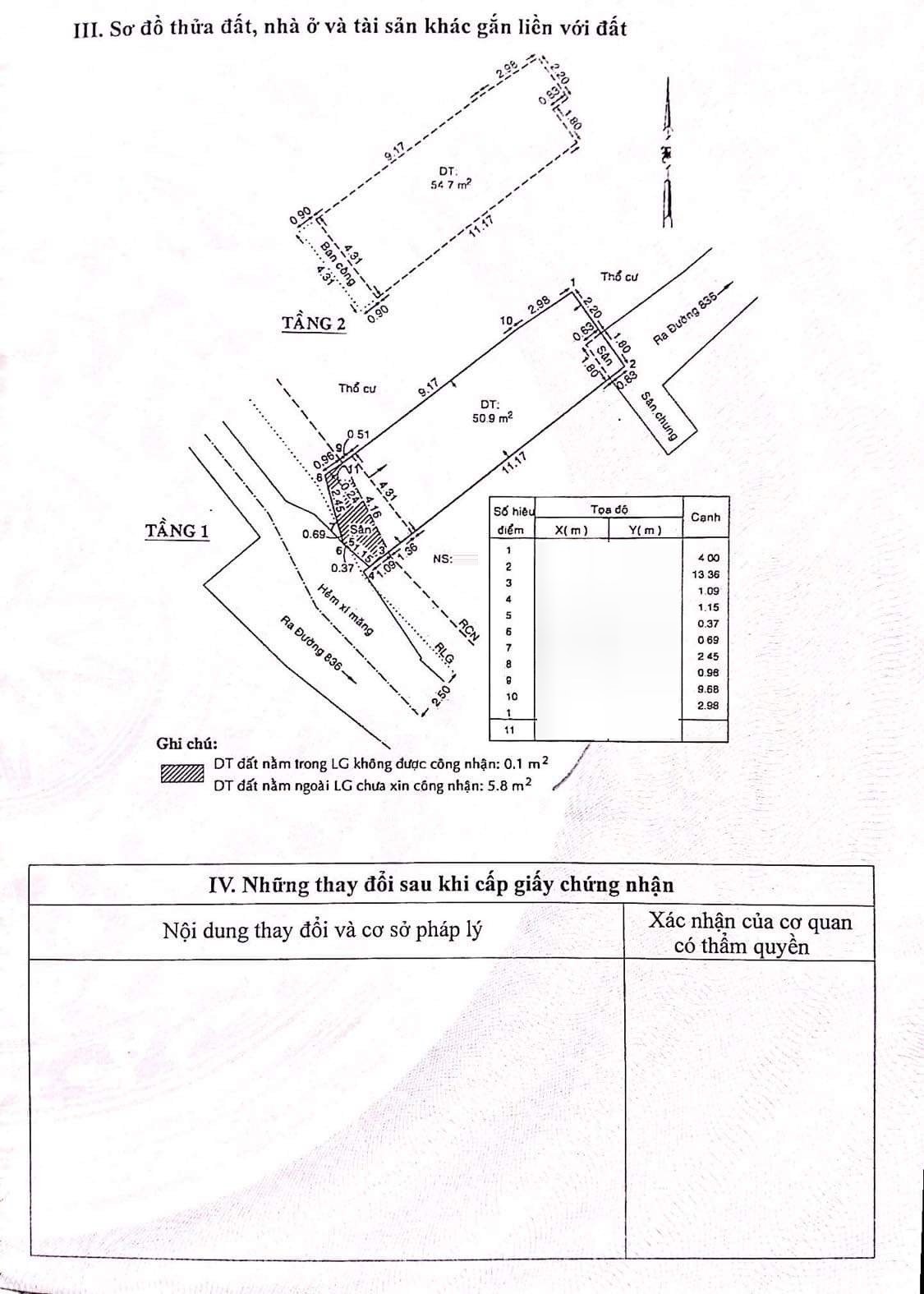 *Diện Tích đất công nhận : 54.8m2 ngang 4.3m x dài 13.3m