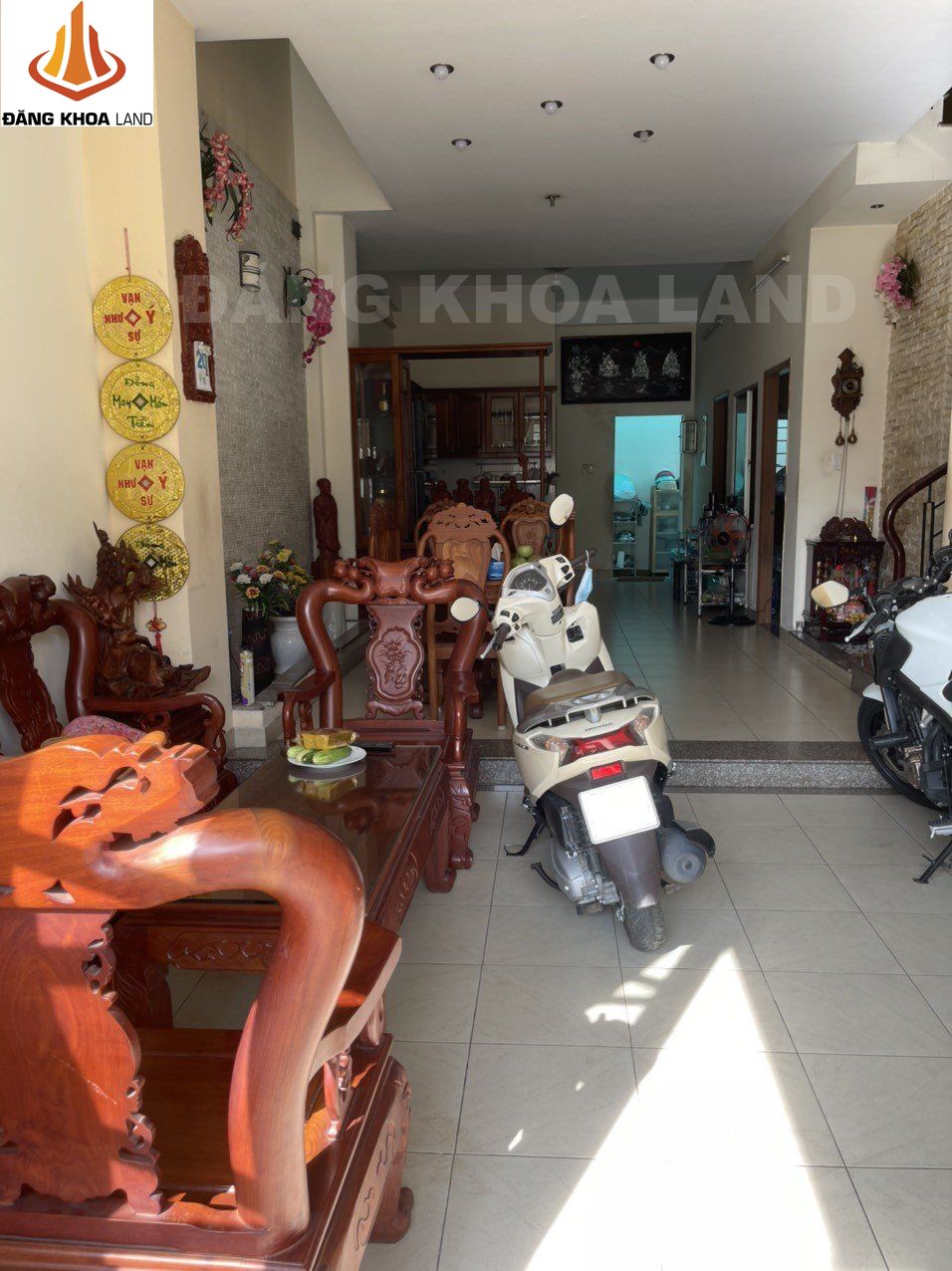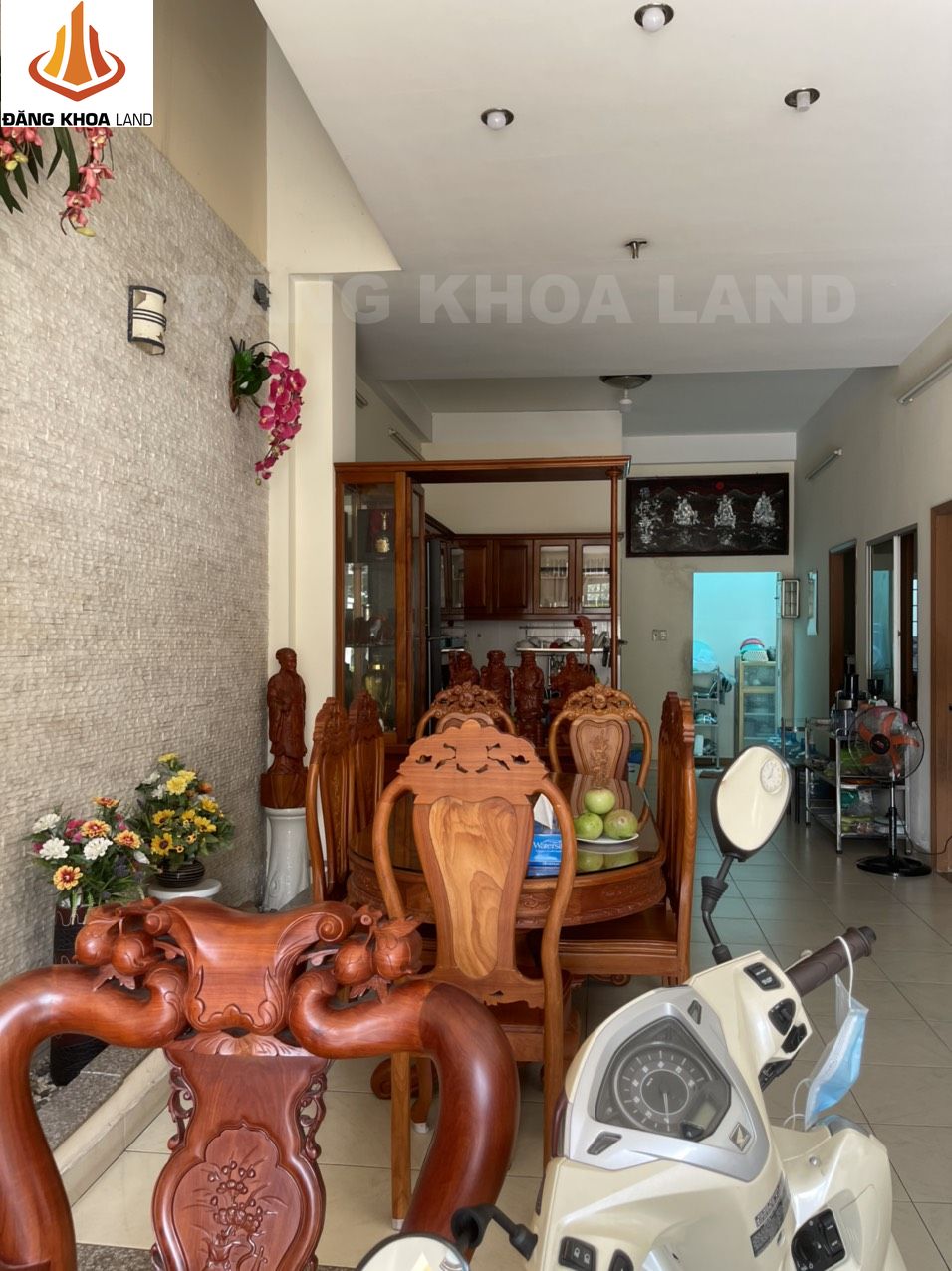 nhà 1 trệt 2 lầu, gồm 4 PN, 6 WC, 1 gara để xe hơi, 1 kho, 1 phòng thờ