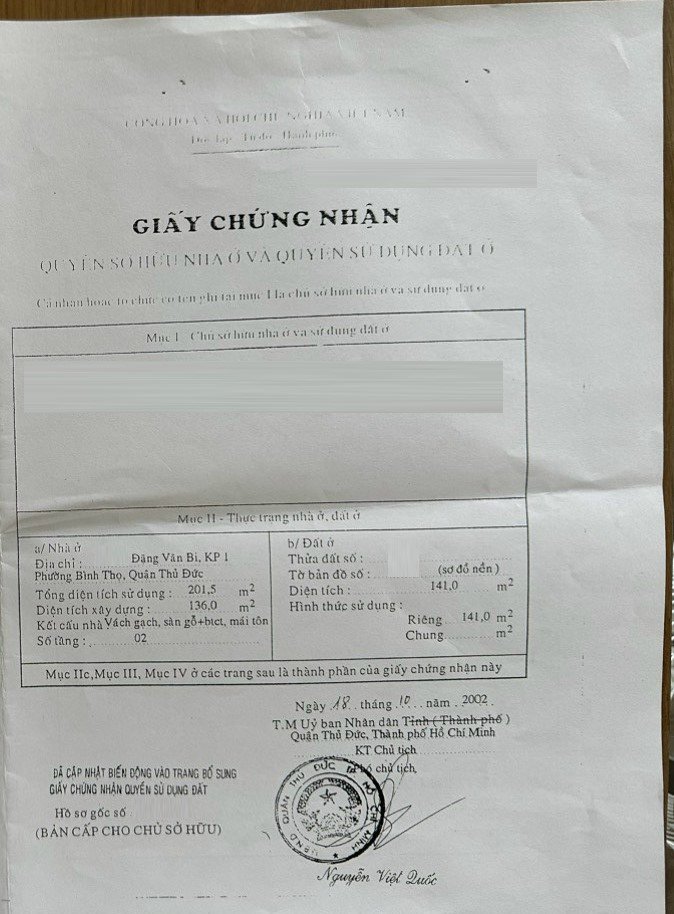 Địa chỉ tài sản: đường Đặng Văn Bi, phường Bình Thọ, TP Thủ Đức, Phường Bình Thọ, Quận Thủ Đức, Hồ Chí Minh