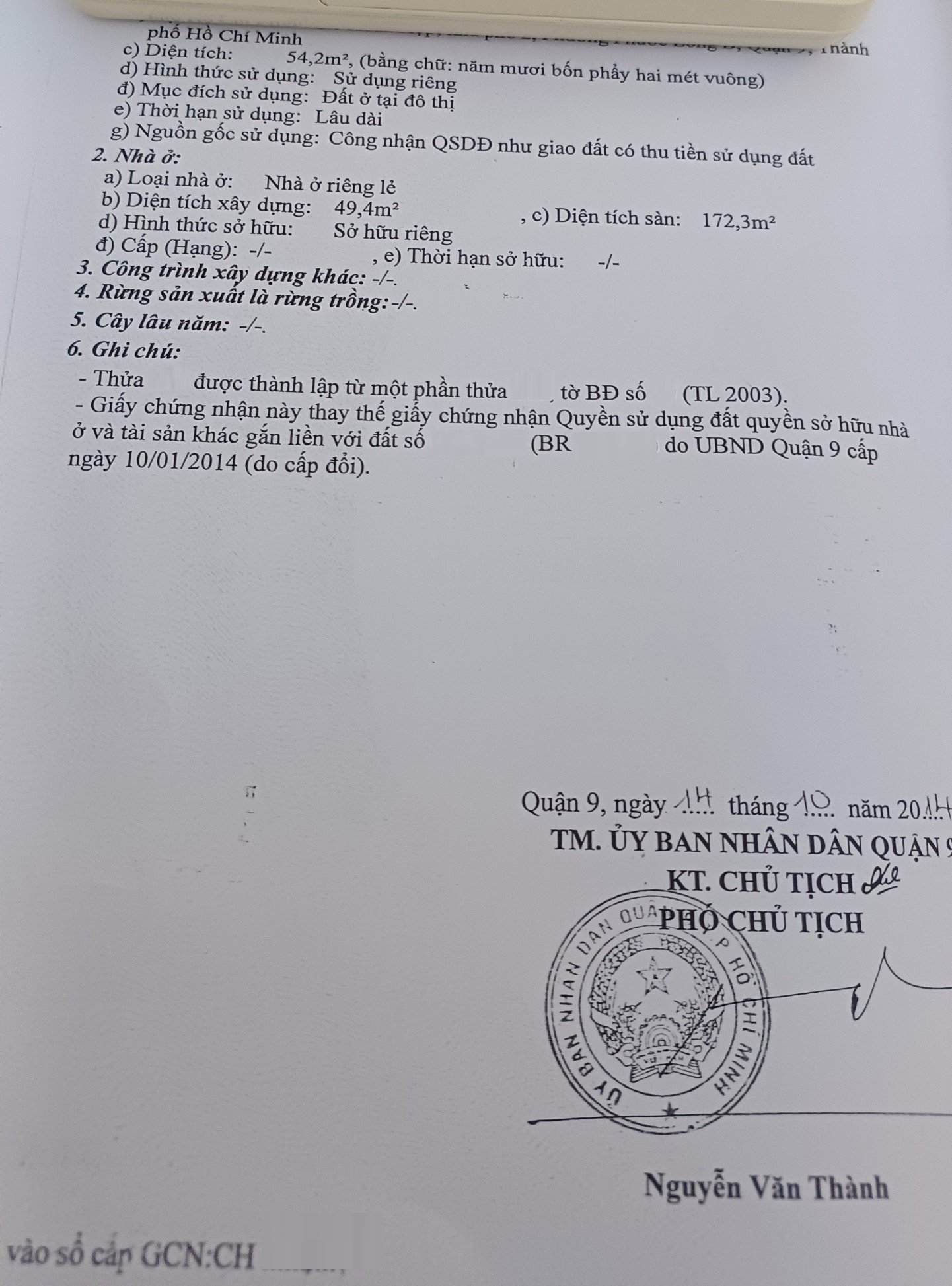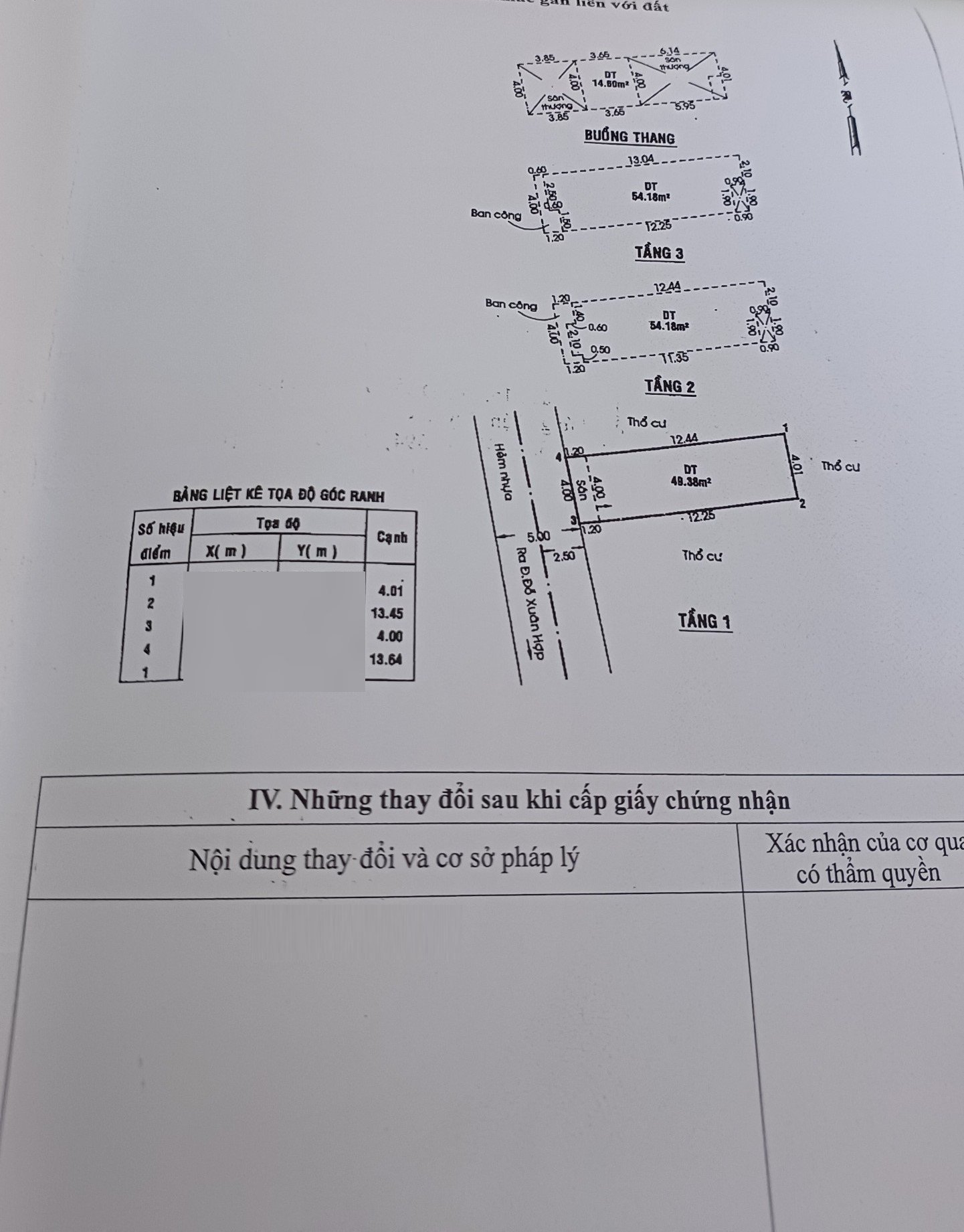 *Diện Tích đất công nhận: 54.2m2 ngang 4m x dài 13.6m