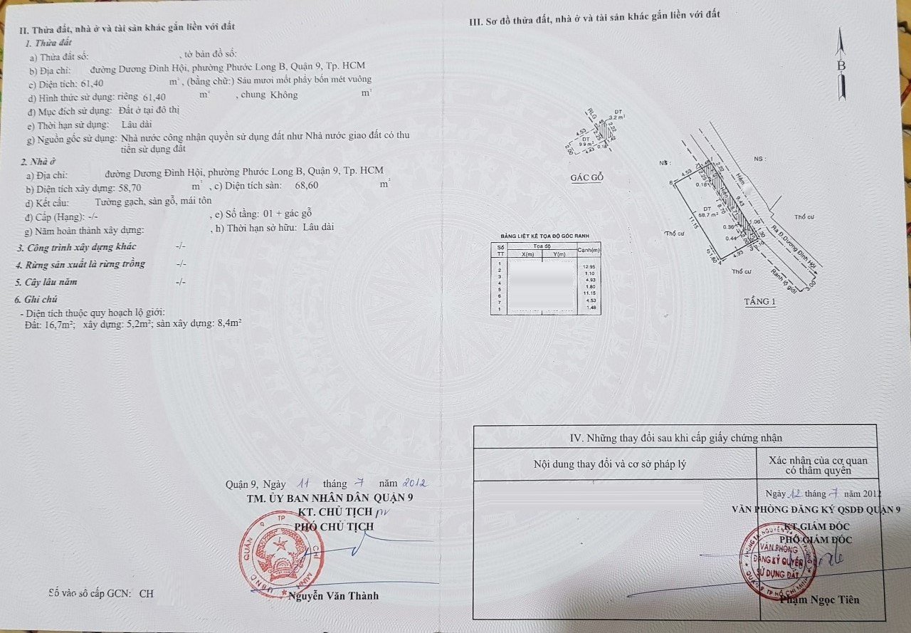 Địa chỉ tài sản: đường Dương Đình Hội, phường Phước Long B, TP Thủ Đức, Phường Phước Long B, Quận 9, Hồ Chí Minh