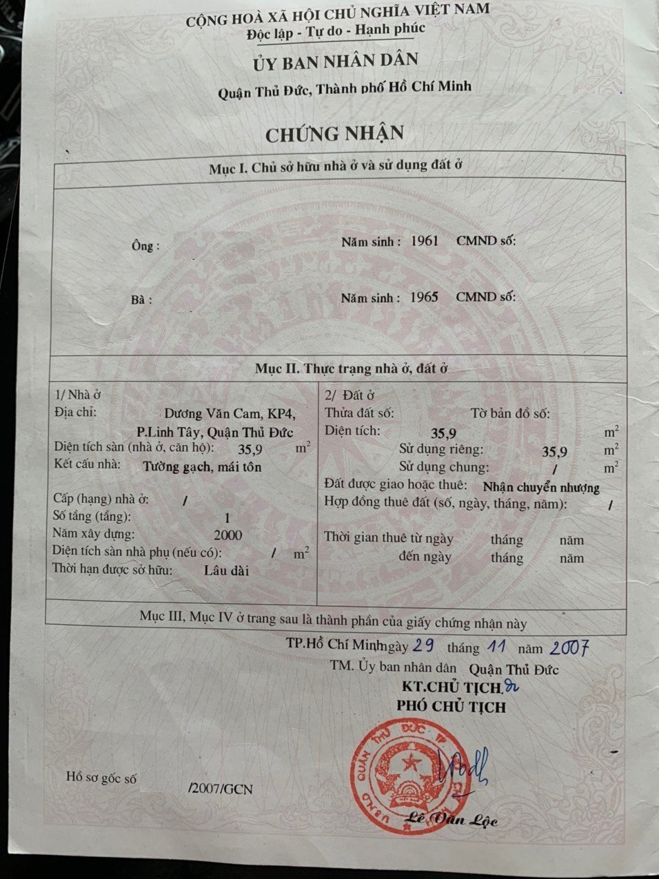 Địa chỉ tài sản: đường Dương Văn Cam, phường Linh Tây,, Phường Linh Tây, Quận Thủ Đức, Hồ Chí Minh