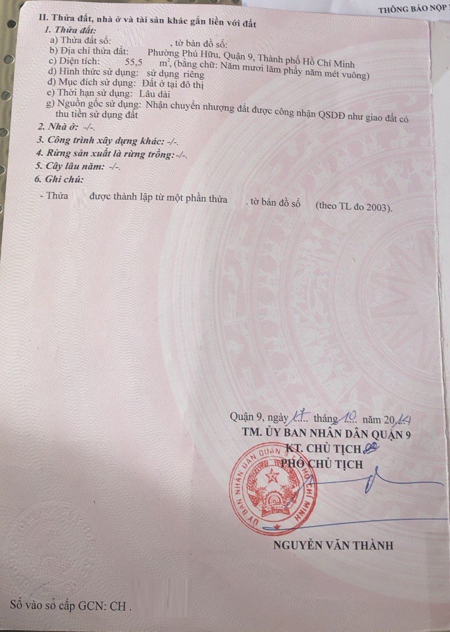Địa chỉ tài sản: đường Gò Cát, phường Phú Hữu, TP Thủ Đức, Phường Phú Hữu, Quận 9, Hồ Chí Minh