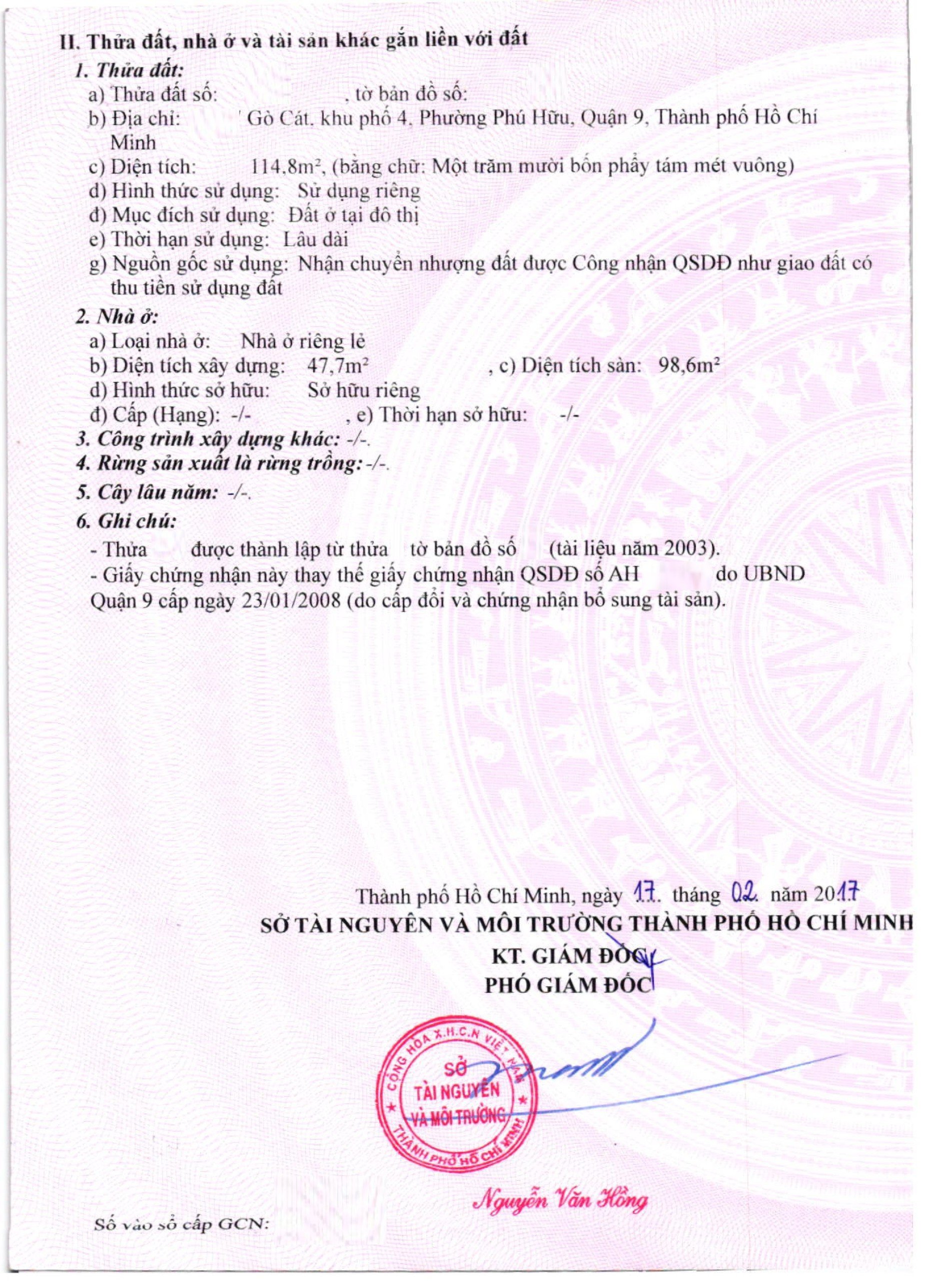 Địa chỉ tài sản: đường Gò Cát, phường Phú Hữu, TP Thủ Đức, Phường Phú Hữu, Quận 9, Hồ Chí Minh