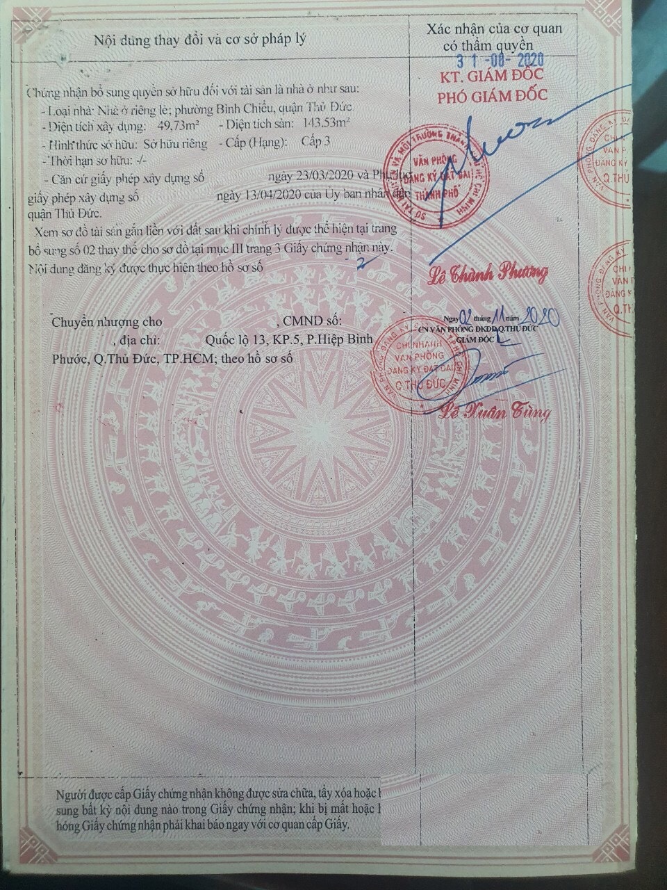 <65BC>: Bán nhà đường hẻm đường Ngô Chí Quốc, phường Bình Chiểu. Hẻm ô tô, nhà 1 trệt 2 lầu gồm: 3 phòng ngủ, 3WC, 1 phòng thờ, sân thượng.