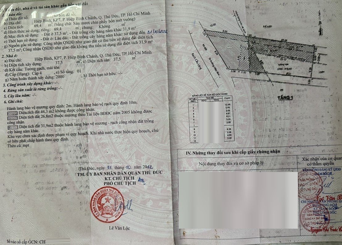 *Diện Tích đất công nhận: 69.4m2 ngang 9.2m x dài 4.8m – ODT 37.5m CHN 31.9m
