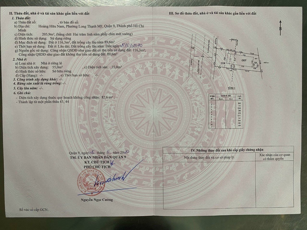 Địa chỉ tài sản: đường Hoàng Hữu Nam, phường Long Thạnh Mỹ, Phường Long Thạnh Mỹ, Quận 9, Hồ Chí Minh