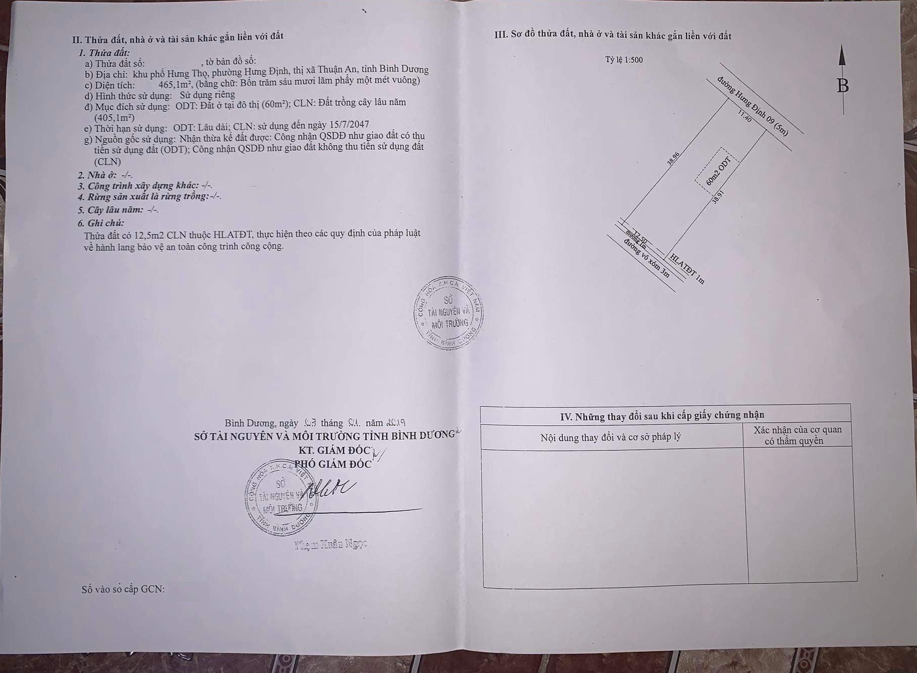 *Diện Tích đất công nhận: 465.1 m2 ngang 11.4 m x dài 38.96 m ODT: 60 m2 CLN: 405.1 m2