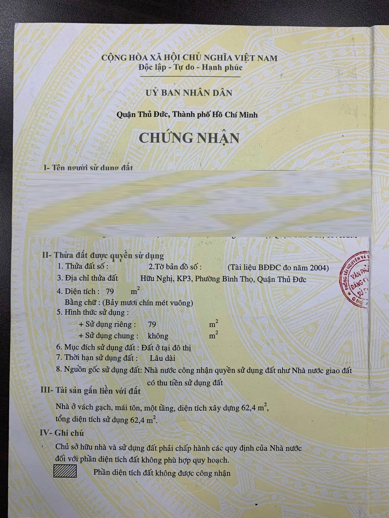 Địa chỉ tài sản: đường Hữu Nghị, Phường Bình Thọ, TP Thủ Đức., Phường Bình Thọ, Quận Thủ Đức, Hồ Chí Minh