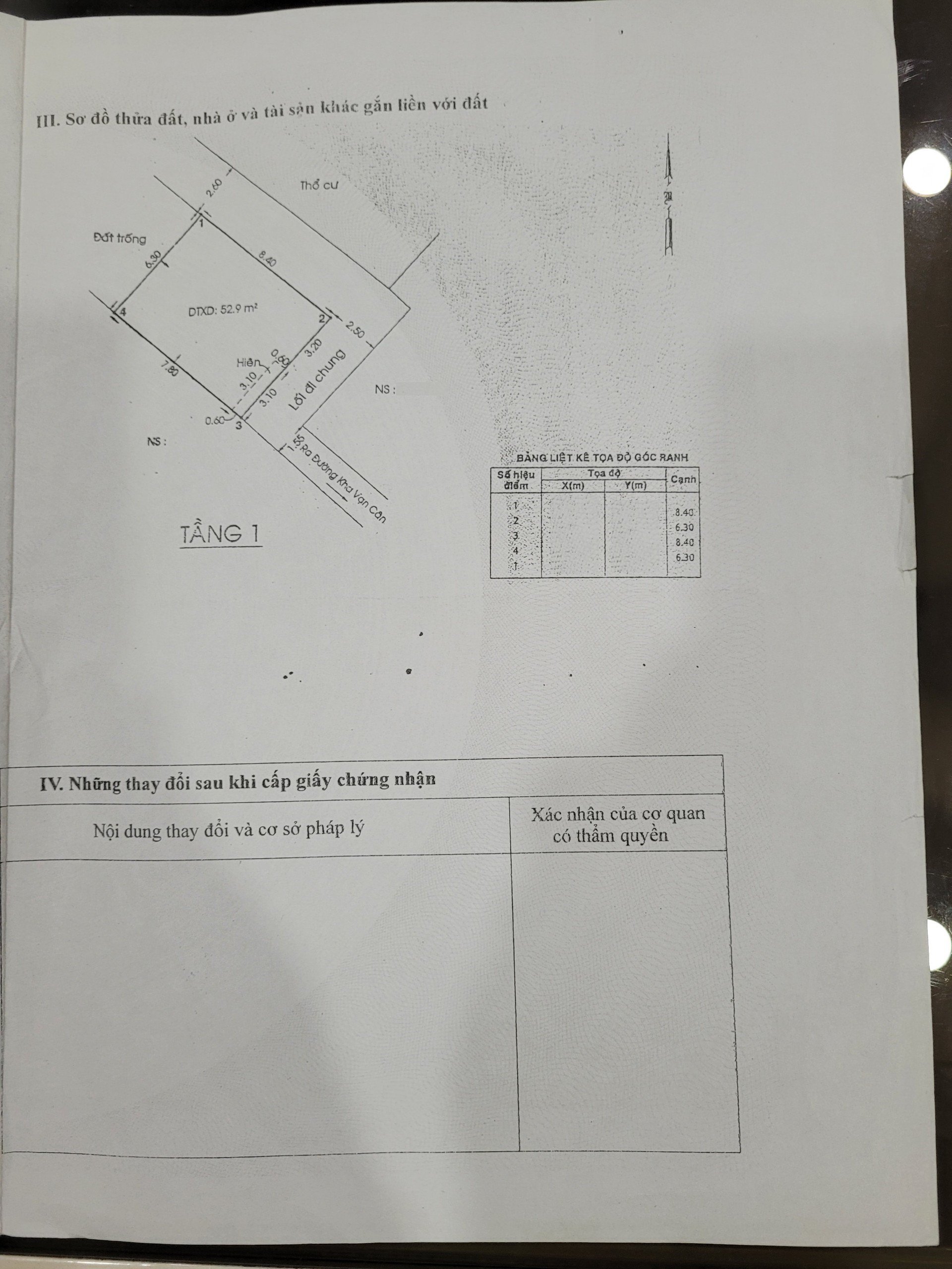 *Diện Tích đất công nhận: 52.9 m2 ngang 6.3 m x dài 8.4 m