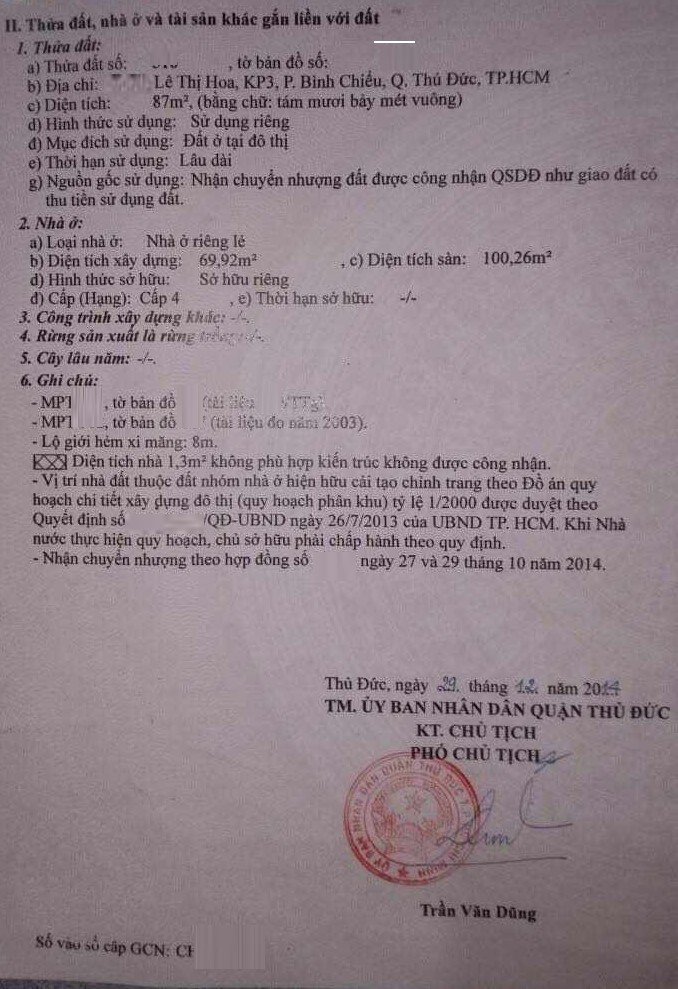 Địa chỉ tài sản: đường Lê Thị Hoa , Phường Bình Chiểu, Phường Bình Chiểu, Quận Thủ Đức, Hồ Chí Minh