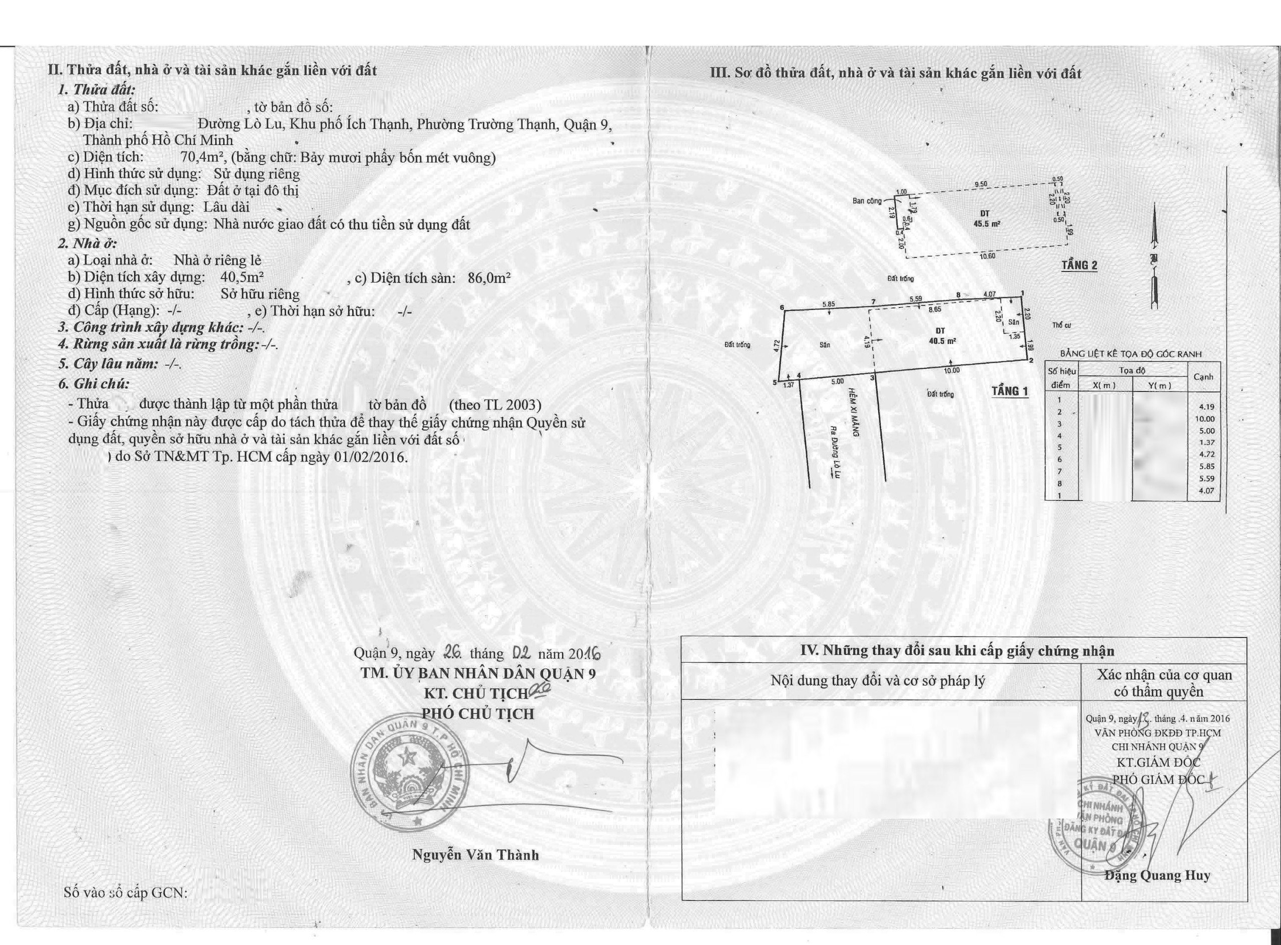*Diện tích đất công nhận: 70.4m2. Ngang 4.72m x Dài 16.37m.