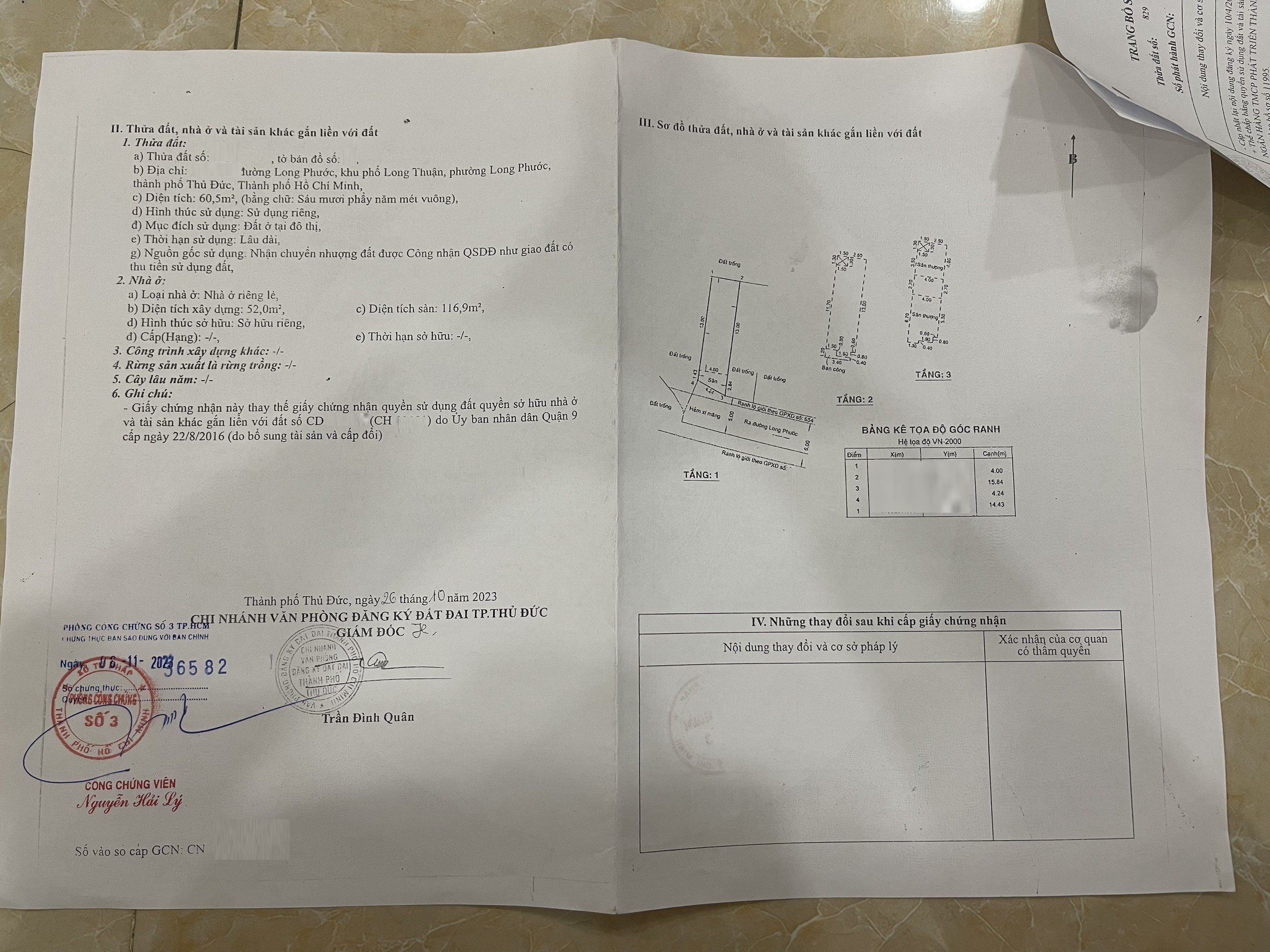 *Diện Tích đất công nhận: 60.5m ngang 4m dài 16m