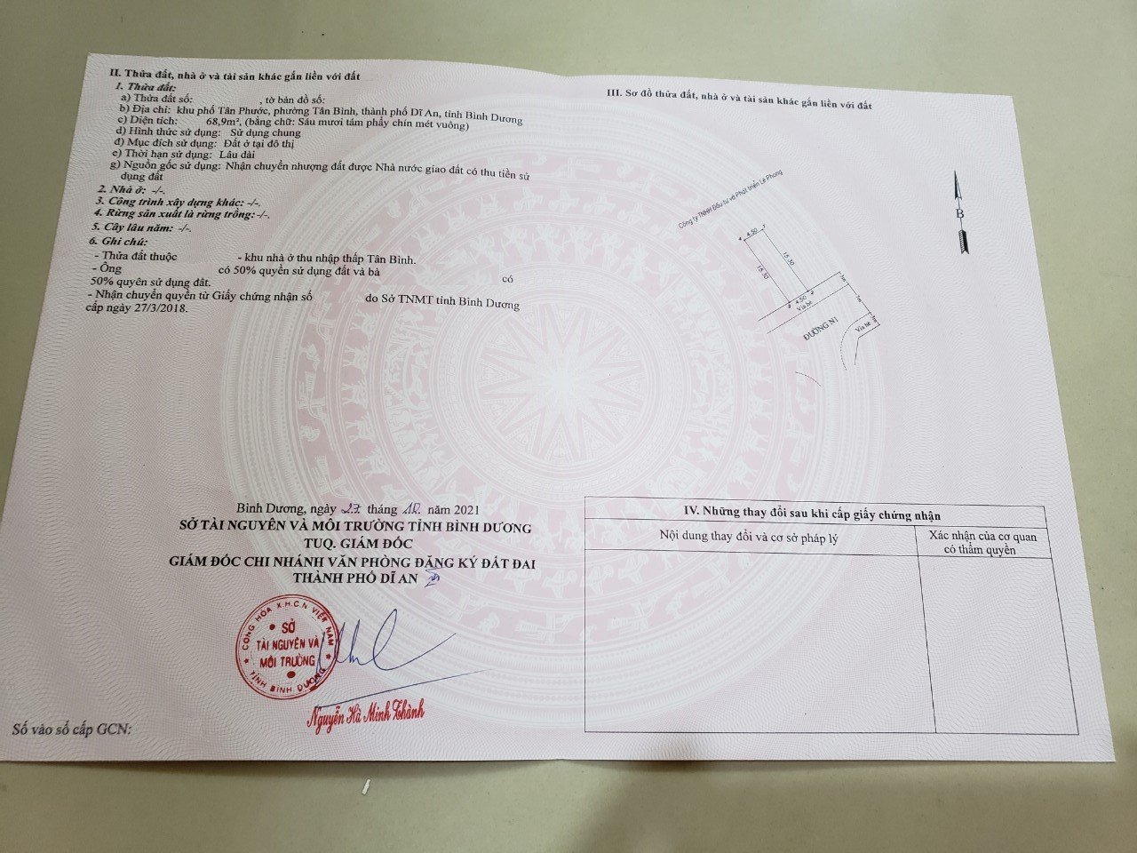 Địa chỉ tài sản: Đường N1, KDC Lê Phong, Phường Tân Bình, Dĩ An, Phường Tân Bình, Thị xã Dĩ An, Bình Dương