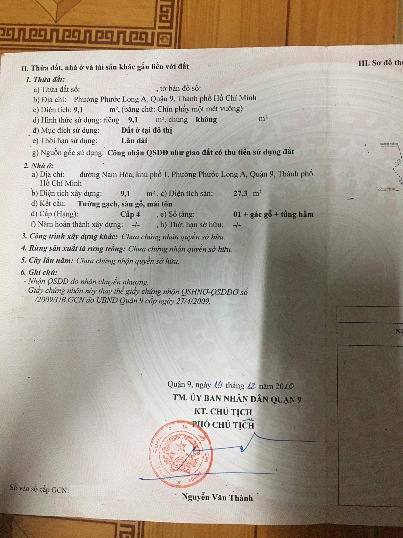 *Diện Tích đất công nhận: 9.1 m2 ngang 2.23 m x dài 4 m, sàn 27.3m²