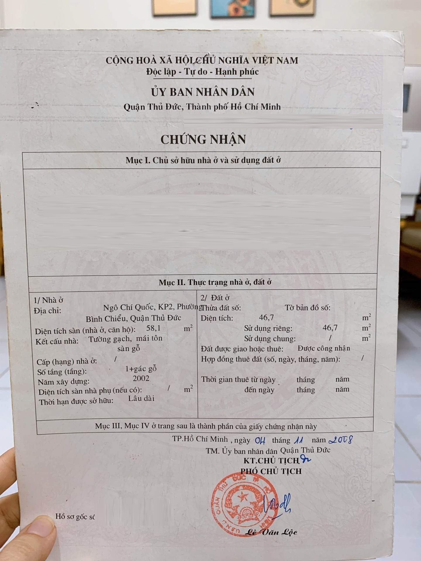 Địa chỉ tài sản: đường Ngô Chí Quốc, Phường Bình Chiểu, TP Thủ Đức, Phường Bình Chiểu, Quận Thủ Đức, Hồ Chí Minh