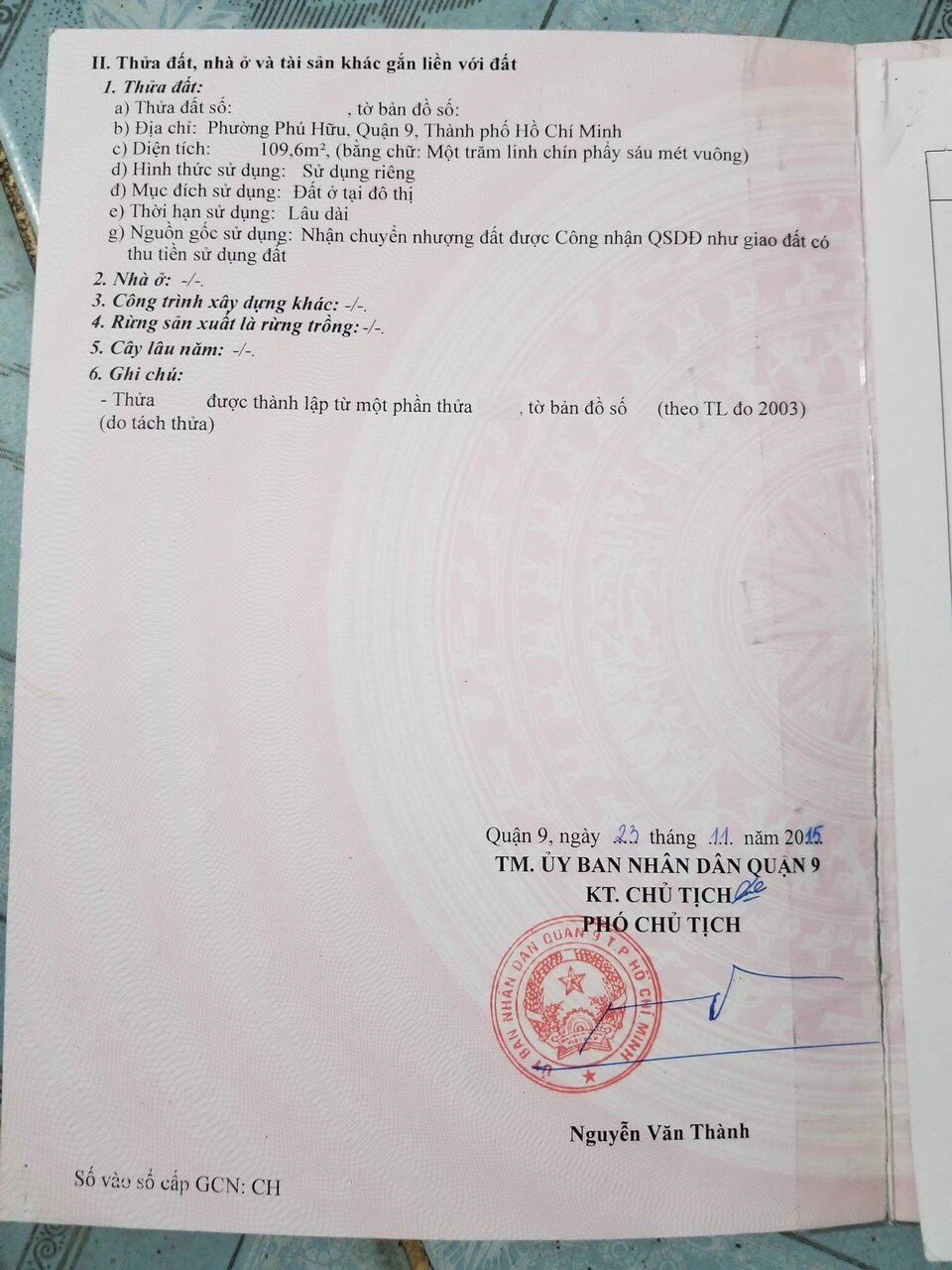 Địa chỉ tài sản: đường Nguyễn Thị Tư, phường Phú Hữu, Phường Phú Hữu, Quận 9, Hồ Chí Minh
