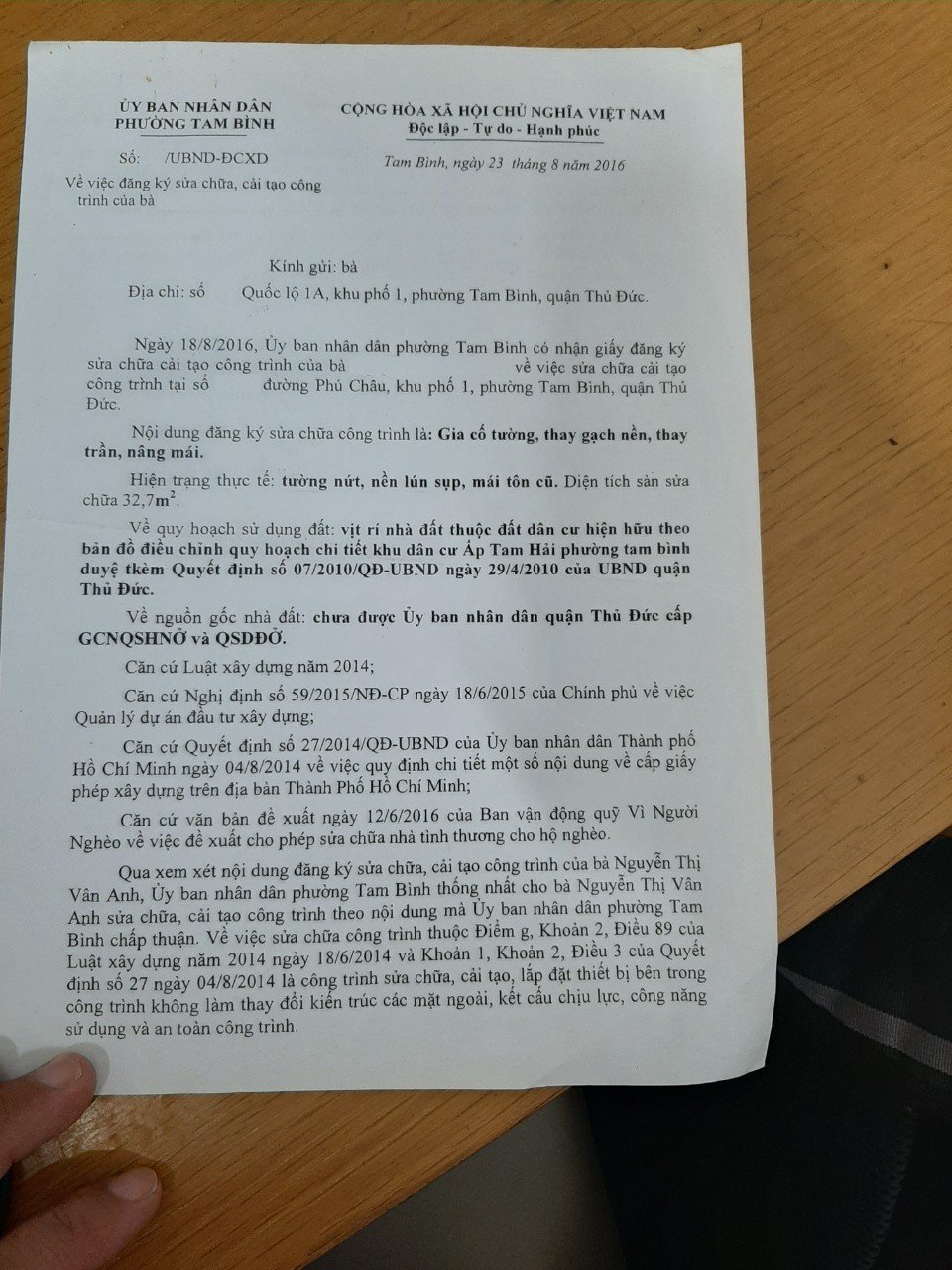 *Diện Tích đất công nhận: 32 m2 ngang 4 m x dài 8 m