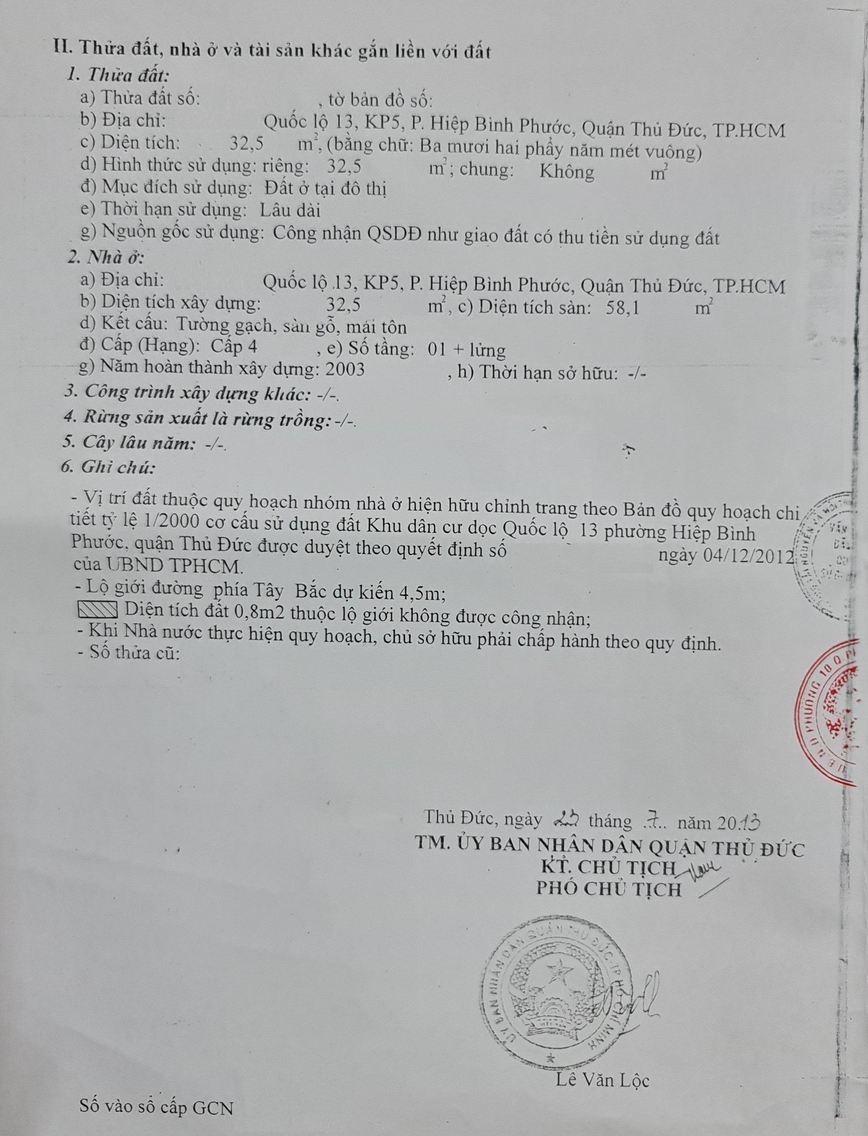 Địa chỉ tài sản: đường QL 13, Phường Hiệp Bình Phước, Phường Hiệp Bình Phước, Quận Thủ Đức, Hồ Chí Minh