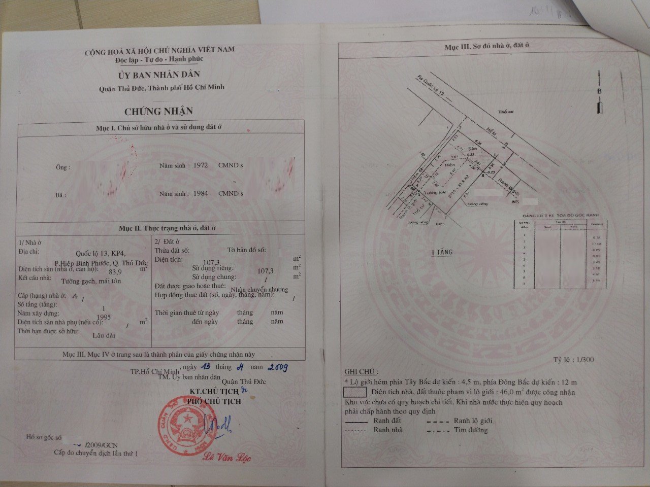 *Diện Tích đất công nhận: 107.3 m2 ngang 8,38m x dài 12.8m