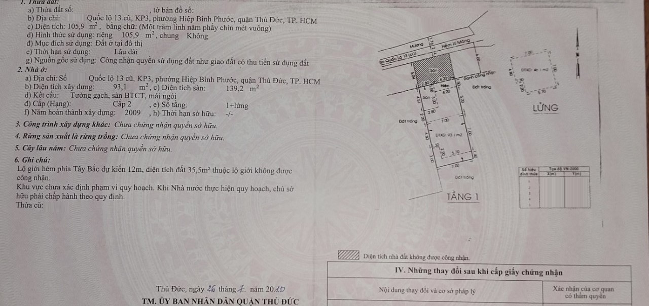 Địa chỉ tài sản: đường Quốc lộ 13 cũ, Phường Hiệp Bình Phước, Phường Hiệp Bình Phước, Quận Thủ Đức, Hồ Chí Minh