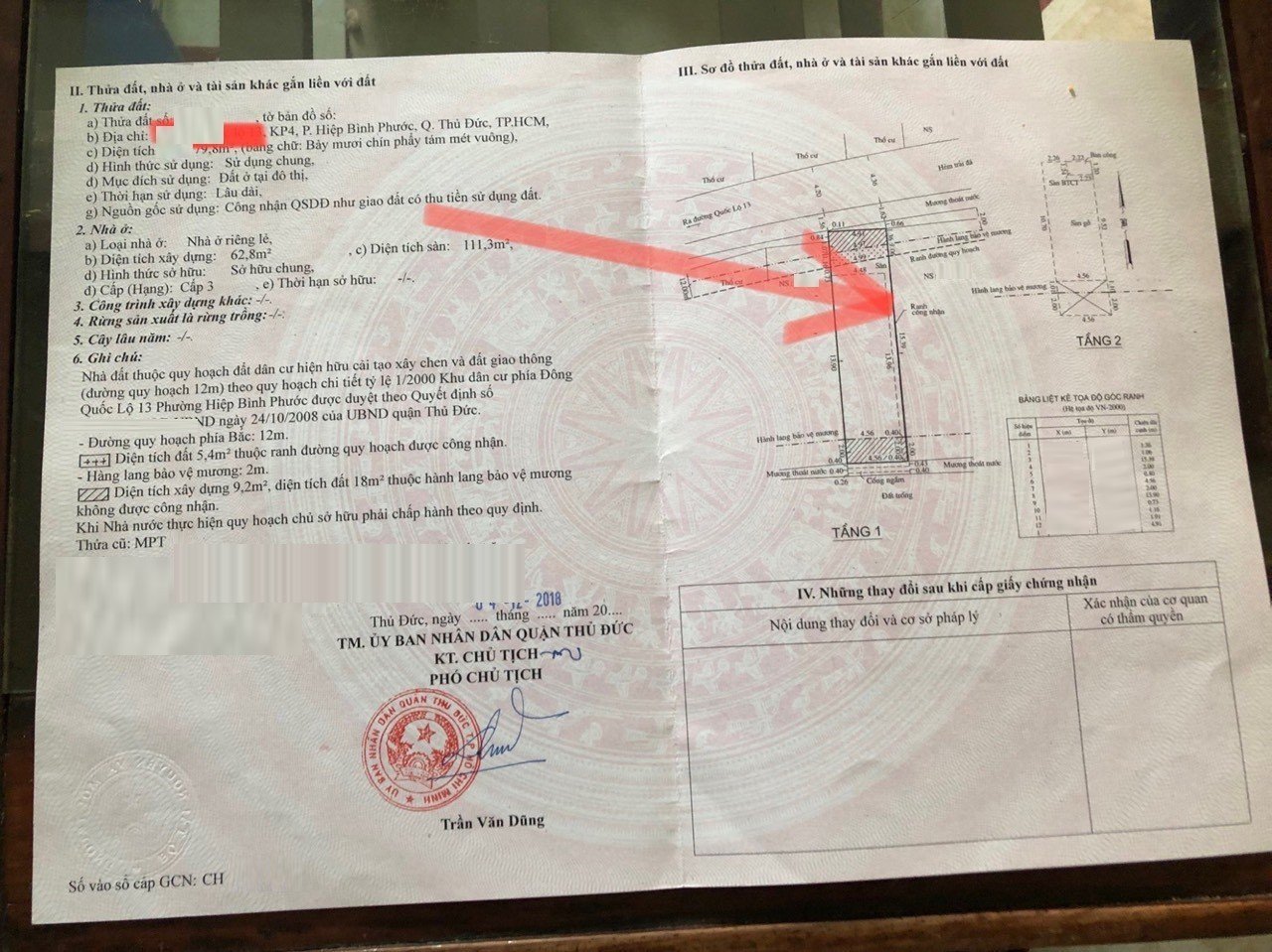 *Diện tích đất công nhận: 79.8m2. Ngang 4.96m x Dài 15.6m.
