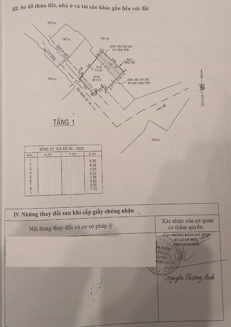 *Diện Tích đất công nhận: 54.8 m2 ngang 6 m x dài 9.13 m