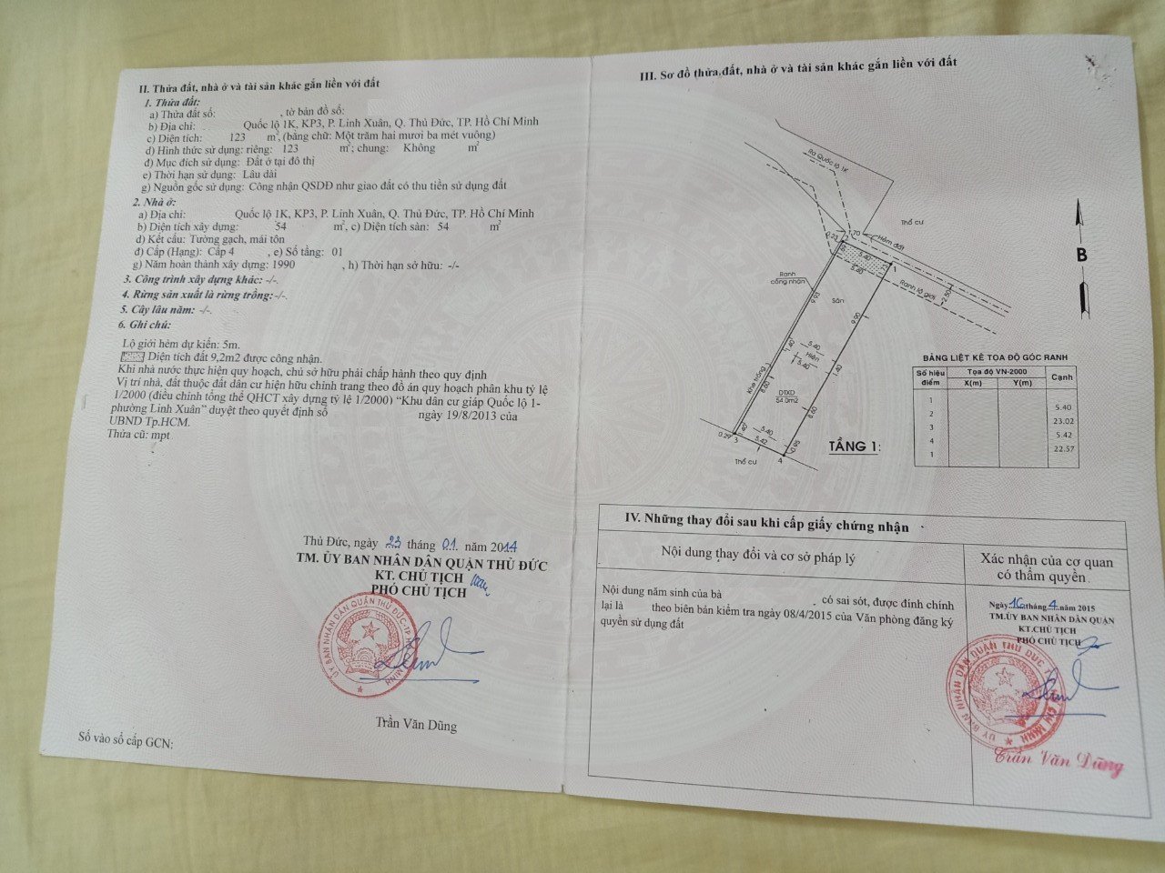 *Diện Tích đất công nhận: 123 m2 ngang 5.4 m x dài 22.7 m