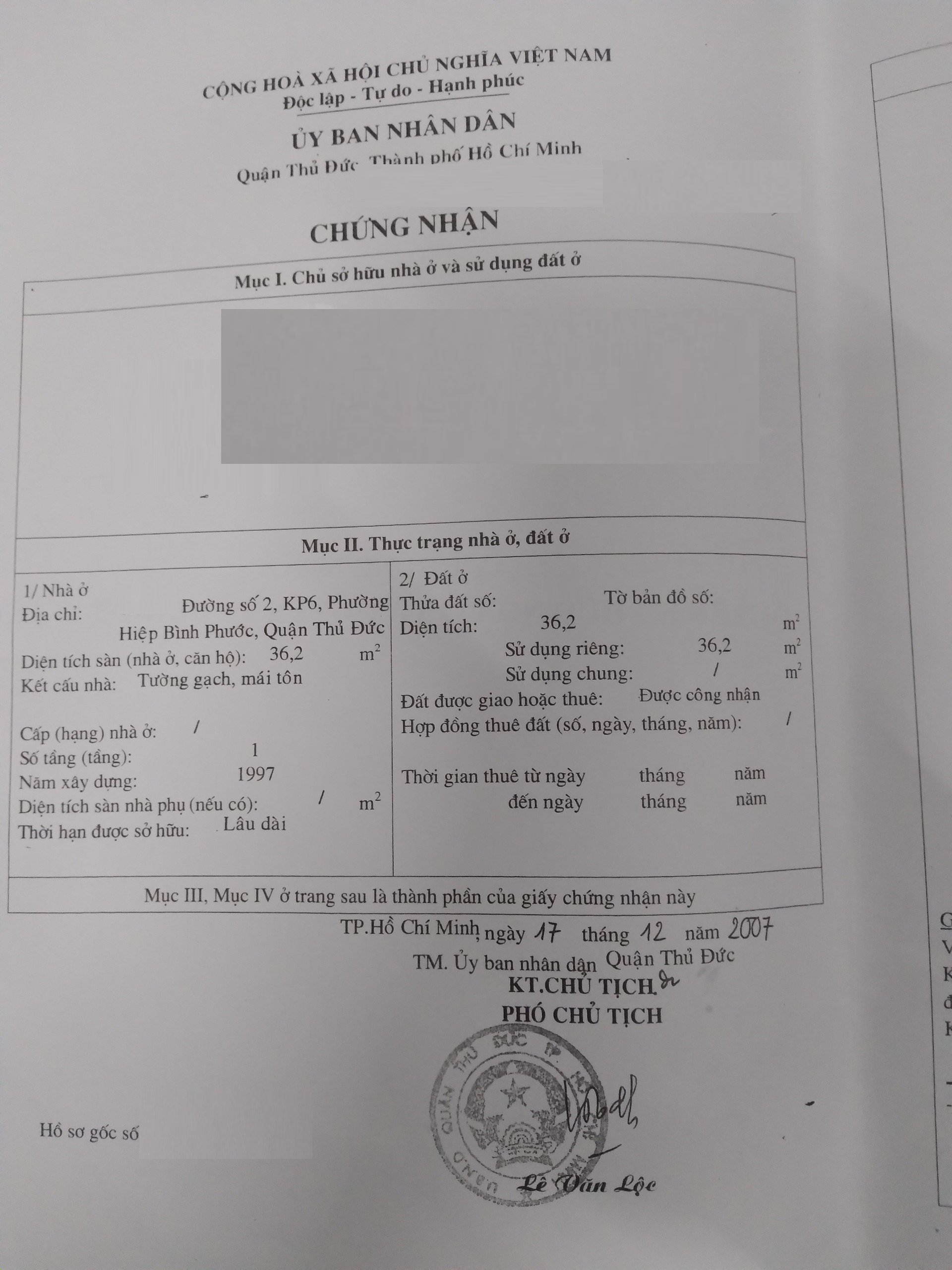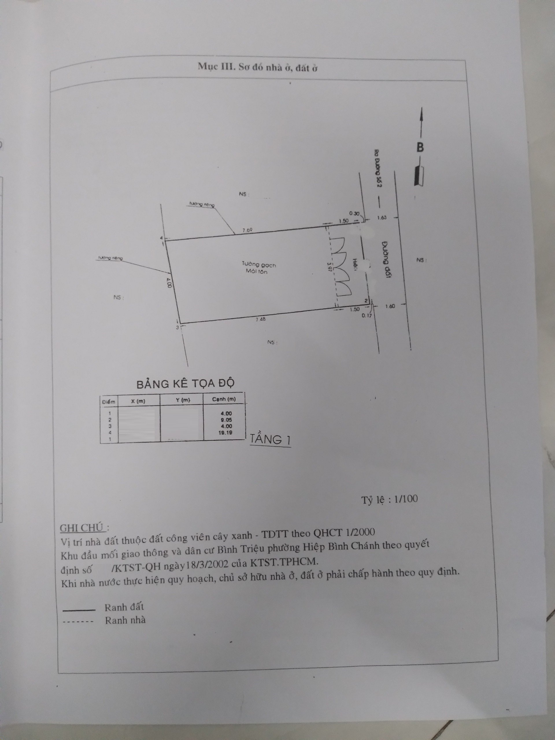*Diện tích đất công nhận: 36.2m2. Ngang 4m x Dài 9.05m. Nhà chưa hoàn công.