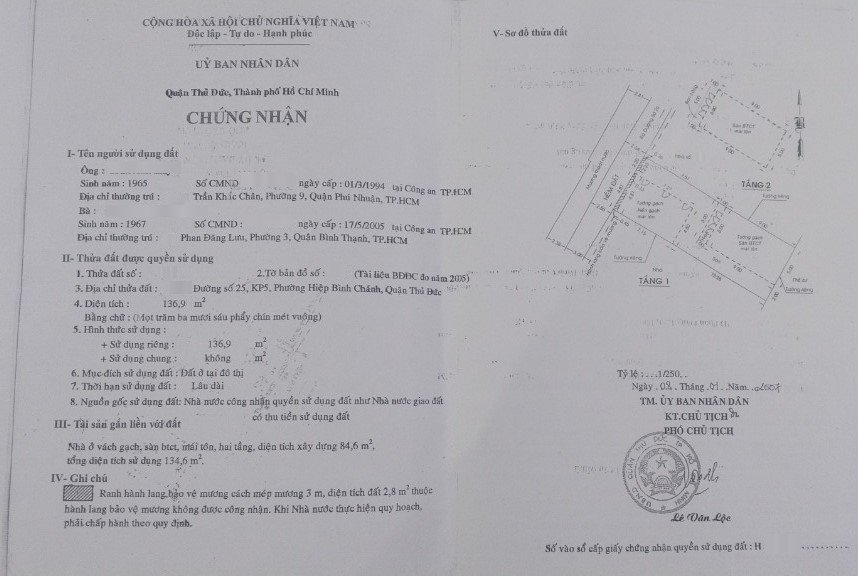 *Diện Tích đất công nhận: 136.9m2 ngang 7m x dài 19.5m
