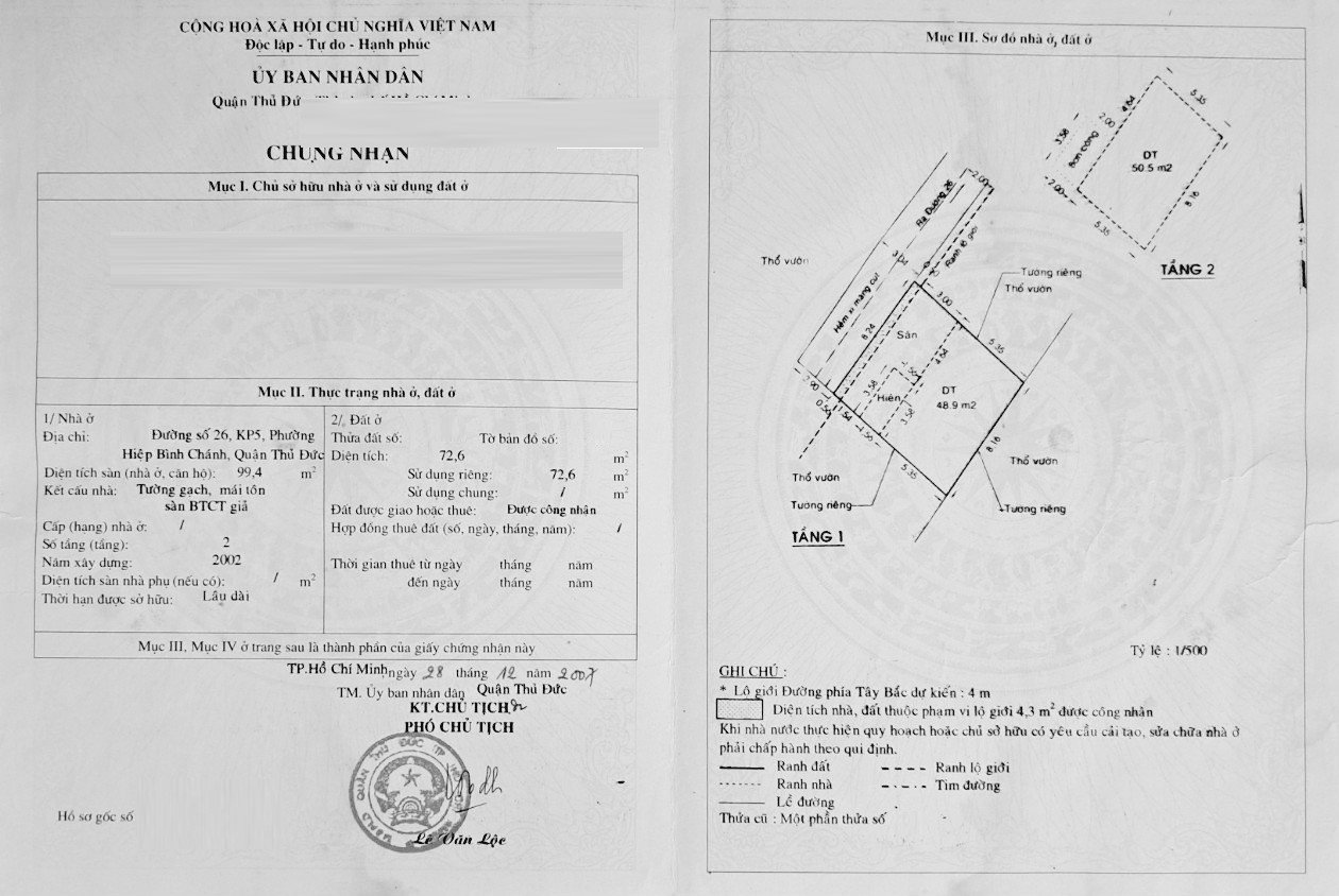 Địa chỉ tài sản: đường số 26, phường Hiệp Bình Chánh, Phường Hiệp Bình Chánh, Quận Thủ Đức, Hồ Chí Minh