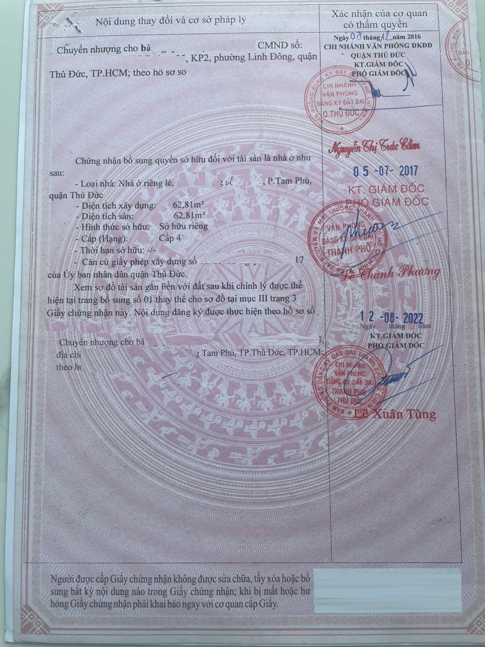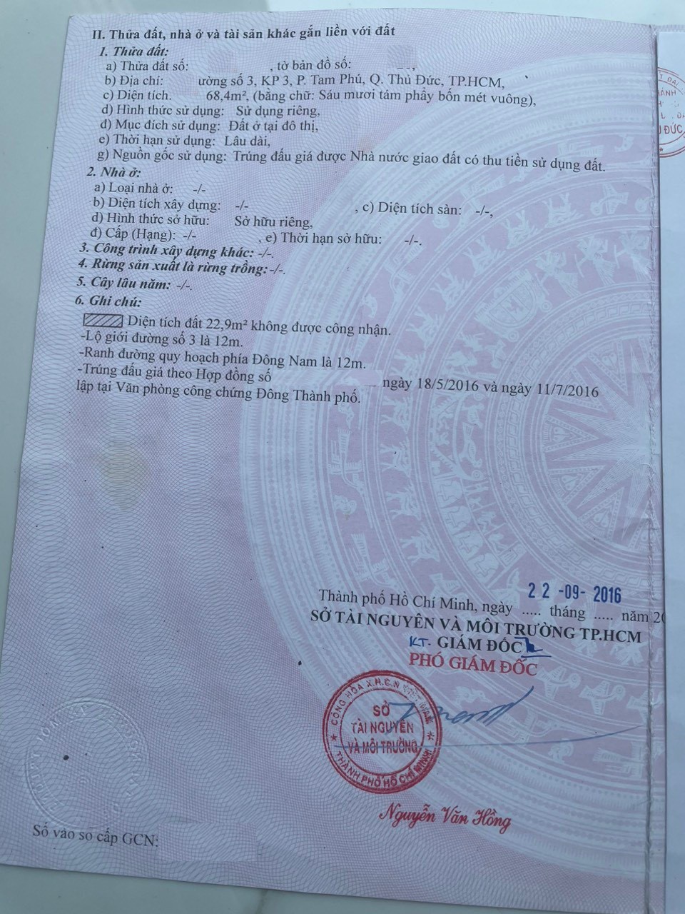 Địa chỉ tài sản: đường số 3, P Tam Phú, Phường Tam Phú, Quận Thủ Đức, Hồ Chí Minh